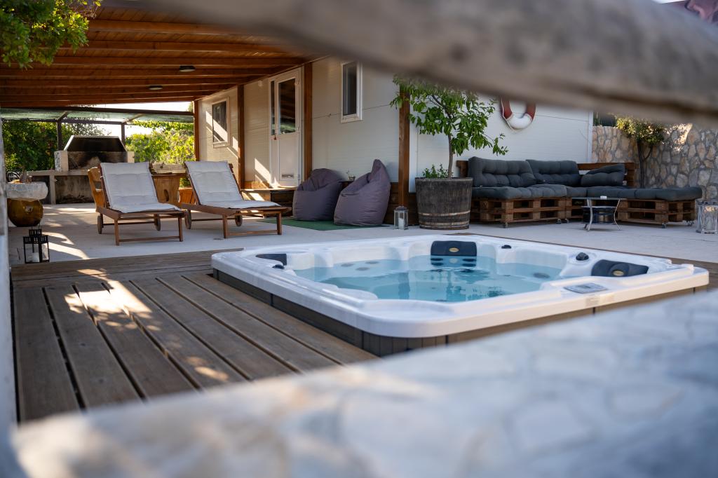 A Robinson ház Bawa ideális hely a mindennapi élet elől menekülni. Olajfaligetek, Brač kövei és a tenger illata veszi körül, így tökéletes lehetőséget kínál arra, hogy minden pillanatot élvezhessen. Mindössze 1,5 km-re található Sumartin autentikus városától, teljes magánéletet kínál, de minden szükséges szolgáltatás és kényelem elérhető közelségben van. Jöjjön el, és köszöntse a reggelt a Biokovo-hegyre és a napsütötte Hvarra néző kilátással a saját jakuzzijából. Pihenjen a közeli strandokon, és élvezze a naplementét szeretteivel. Fedezzen fel egy emlékezetes élményt - egy olyan nyaralást, amilyet még soha nem tapasztalt! Amit kínálunk: ingyenes parkolás, kilátásos jakuzzi, pihenősarok, kültéri zuhanyzó meleg vízzel, étkező, grillező a szükséges felszereléssel, nappali (Wi-Fi, TV és mennyezeti ventilátor), konyha (tűzhely, mosogató meleg vízzel, hűtőszekrény, fagyasztó, Nespresso kávéfőző, fűszerek...), 2 hálószoba és 2 fürdőszoba (ágynemű és törölköző benne van az árban). Minden ablakon redőnyök és szúnyoghálók találhatók.