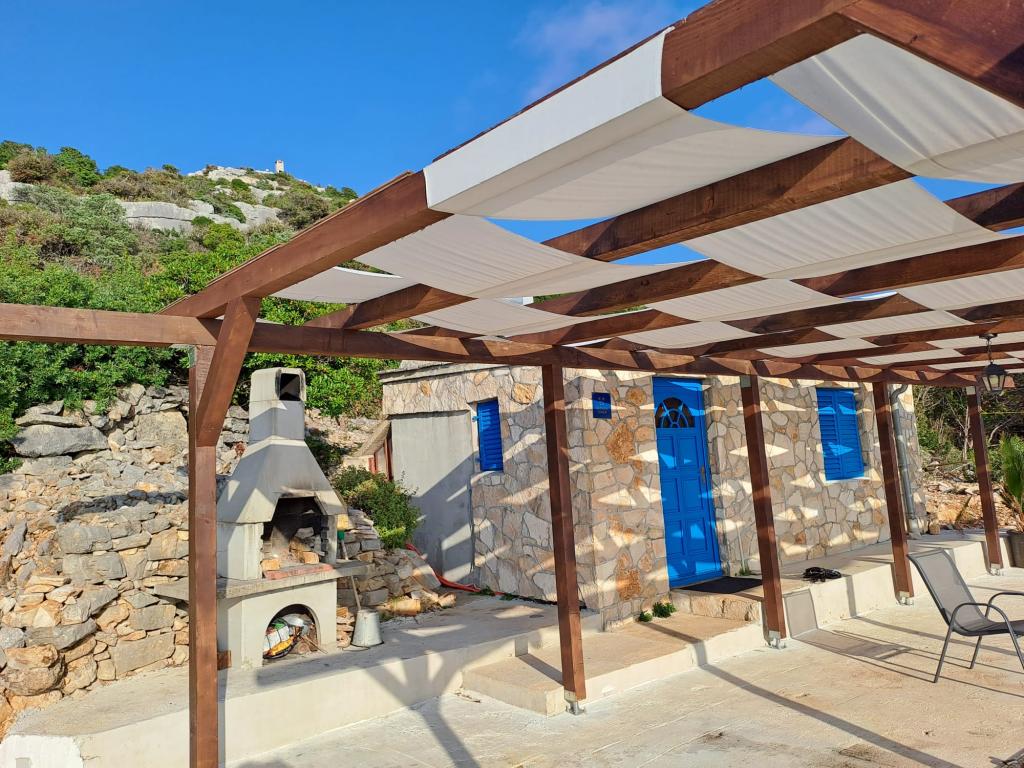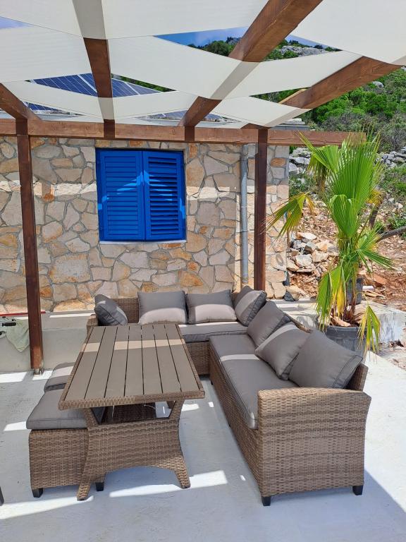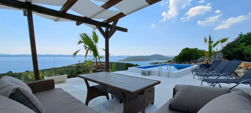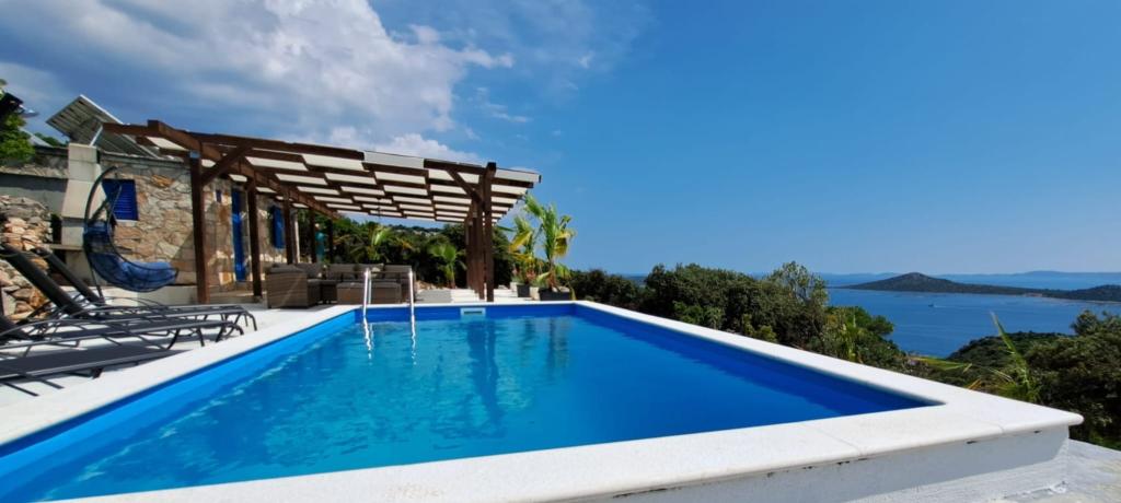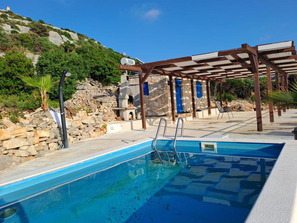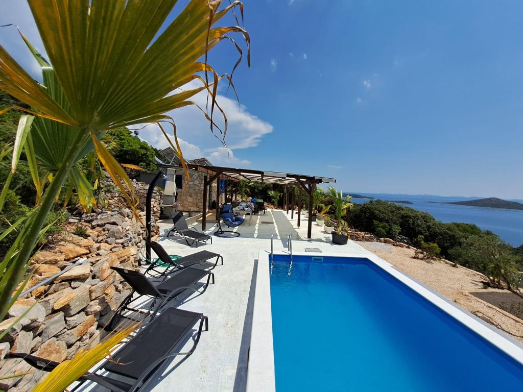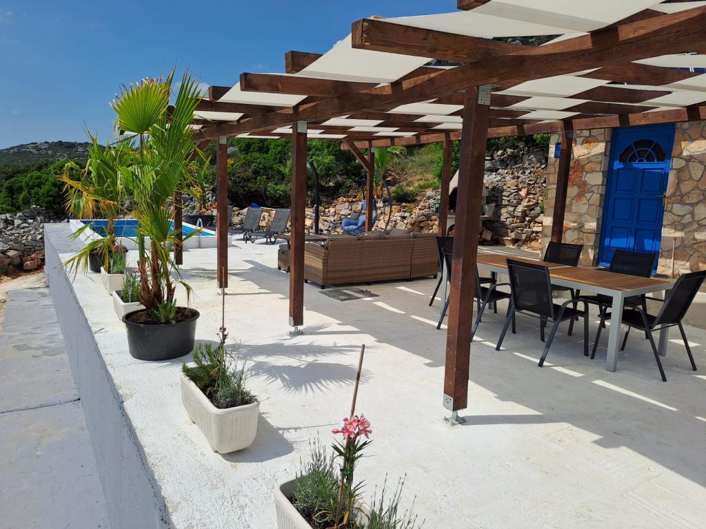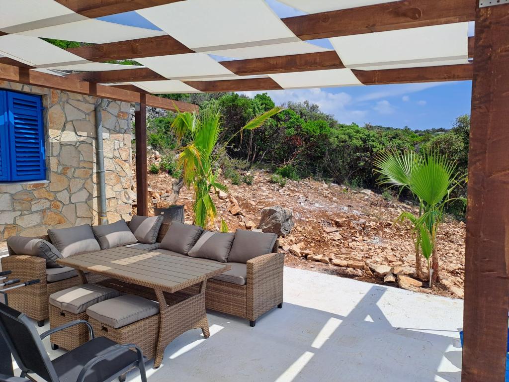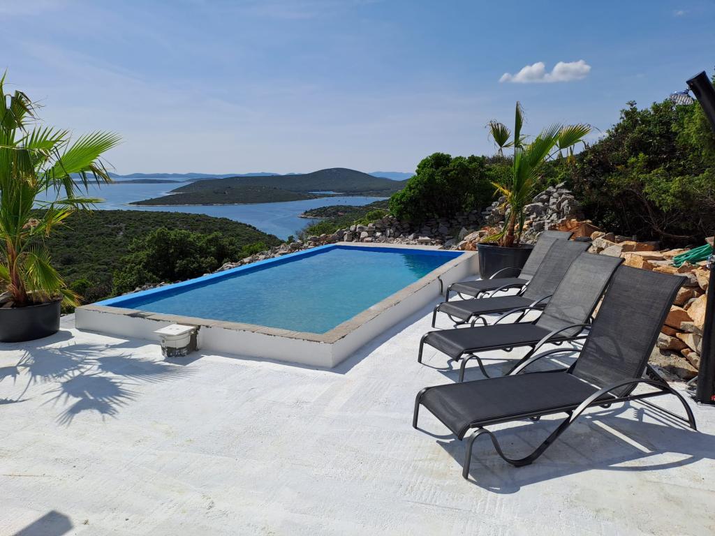 Villa Robinson kő ház közelében található a sziget Pasman, gyönyörű kilátás nyílik a Nemzeti Park. A villa körül tiszta természet, és szomszédot 2 km-re fekszik, így megtapasztalhatják az igazi Robinson Crusoe életmód. A ház egy nagy 35 m2-es, és veszi körül a 10 000 m2. Ebben a ház előtt egy fedett terasz, grill és mellette a ház van egy napozóterasz. Távolság a ház a strandtól kb 250 m. A villamos energia napenergia, de elég erős ahhoz pedig szokásos 220 volt. A víz csapvíz tárolni a víztartályba. A házban 2 hálószoba. Az egyik hálószobában egy franciaágy, és a másik szobában, két ággyal és lehetősége, hogy egy extra egy egyszemélyes ágy. Ágynemű és törölköző biztosított. A konyha jól felszerelt. Van kályha és gáz hűtőszekrény fagyasztó elektromos.
