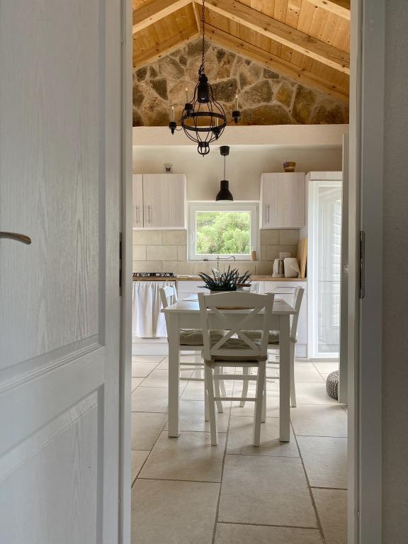 A helyszín és a ház is nagyszerű. Azt mondhatom, hogy ez egy nagyon kényelmes Robinson ház, mert a ház gyakorlatilag új és nagyon szépen berendezett... a fotók mutatják, mi vár rád. Egy kis tartalék lehetőségként választhatsz egy 15 perces vízibicikli utat a kikötőben lévő boltig, vagy egy 700 méteres sétát a part mentén a sziklák mentén, és már van egy ösvény. 6 ház van az öbölben, de ez az egyetlen kiadó, és egyedül voltunk. Még meleg víz is van a zuhanyban és evezni is lehet... egyszóval, minden megvan, amire szükséged van, és nagyon kedves, barátságos tulajdonosok, akik gyors csónakkal viszik a helyszínre.