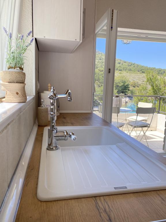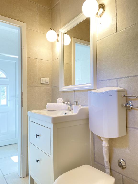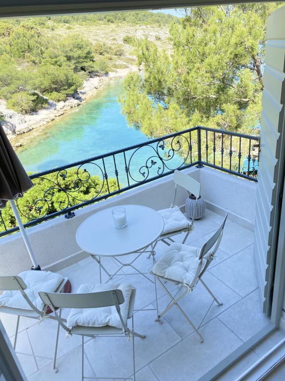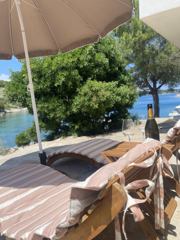 Az újonnan épült "Levina" üdülőház egy zöld és békés oázisban található, tökéletes hely a kikapcsolódásra és a kikapcsolódásra. Vidéki stílusban berendezett. 10 méterre található a tengertől, az öbölben. Az erkélyről gyönyörű kilátás nyílik a tengerre. Az öböl tele van zöld növényzettel, el van rejtve, elszakadva érzi majd magát a világtól, elárasztja a béke és a szépség. Csak néhány másik ház található az öbölben. A házban két hálószoba, zuhanyzós fürdőszoba, gyönyörű kilátással rendelkező erkély és grillezővel ellátott kültéri terasz található. A ház mobil légkondicionálóval és ventilátorral van felszerelve. Képletesen szólva, a szigeten a víz aranyat ér, ezért racionálisan kell használni. A víz természetes forrásokból, esővízből származik. A víz nem ivóvíz, zuhanyozásra és mosásra is használható. A szomszédos öbölben kiváló éttermek, az ACI kikötő és egy piac található. Körülbelül 20 perces sétával elérhető a sziklákon vagy hajóval. Szó szerint a Kornati Nemzeti Park bejáratánál található. A legjobb, ha az indulási kikötőben vásárolsz élelmiszert és ivóvizet.