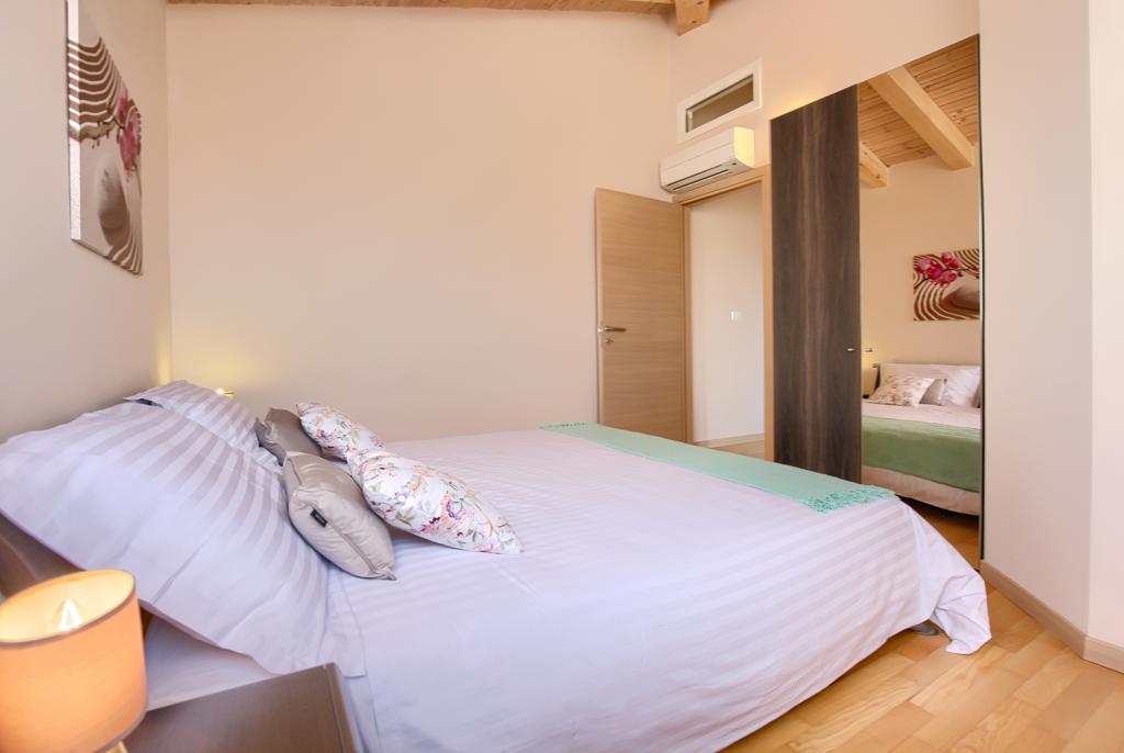 Egy sorház Volme faluban, Banjole közelében, kellemes és szép tartózkodást kínál vendégeinek. Minőségi bútorokkal felszerelt, minden szobája klímával rendelkezik, mely kellemes időtöltést biztosít a meleg nyári napokon (3 db klíma). A házban két hálószoba 2 fő részére, két wc, egy konyha nappalival, ahol egy sarok kanapé található, nagyon kényelmes 1 fő részére. Az egyik hálószobában egy kihúzható kiságy található. A házhoz tartozik egy udvar is grillezővel, amit csak a vendégek használnak, valamint az épületben van egy gyönyörű medence is, amit a környező épületek is használnak, többnyire hétvégiek. A tenger mindössze 300 méterre található, és mindössze 3000 méterre található az RT Kamenjak, ahol Isztria legszebb strandjai találhatók. A faluban számos kerékpárút található, így Premantura is kerékpárral elérhető. Háziállat esetén a felár 60e a teljes tartózkodásra.