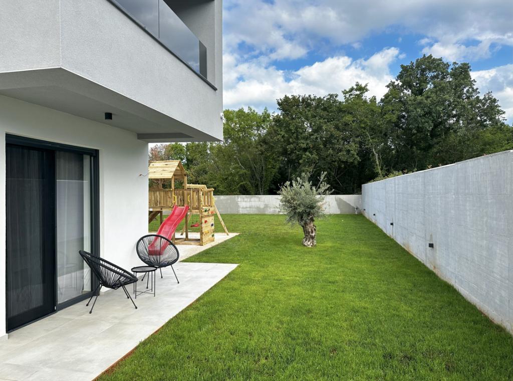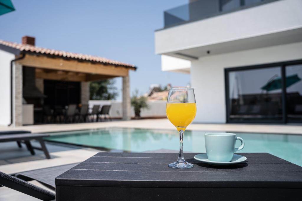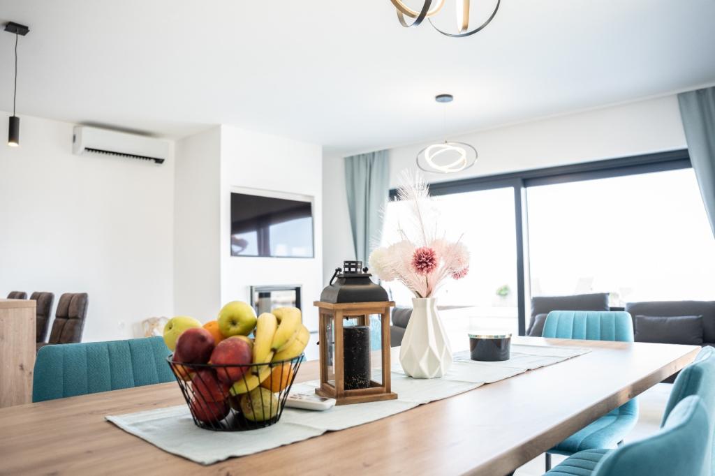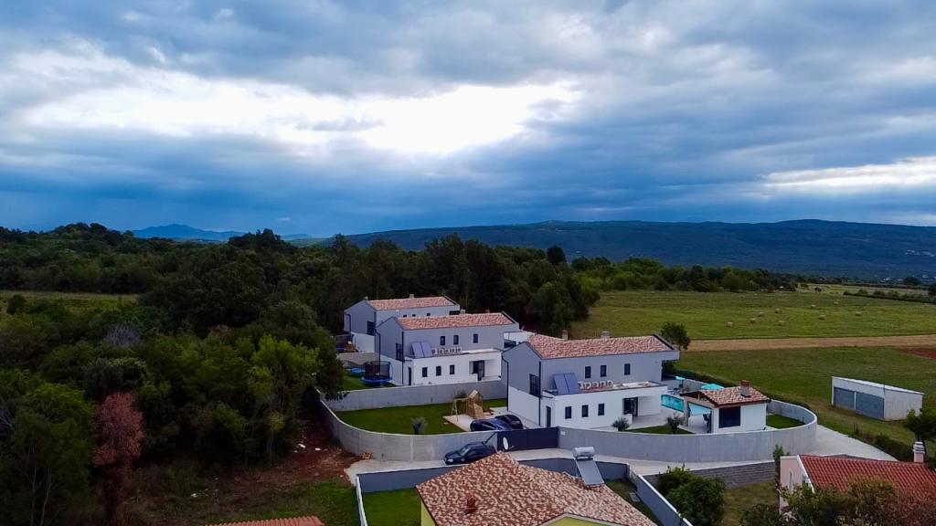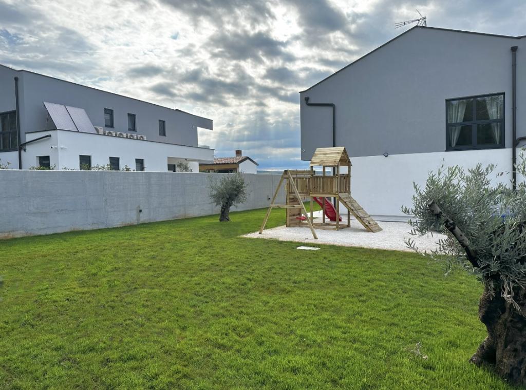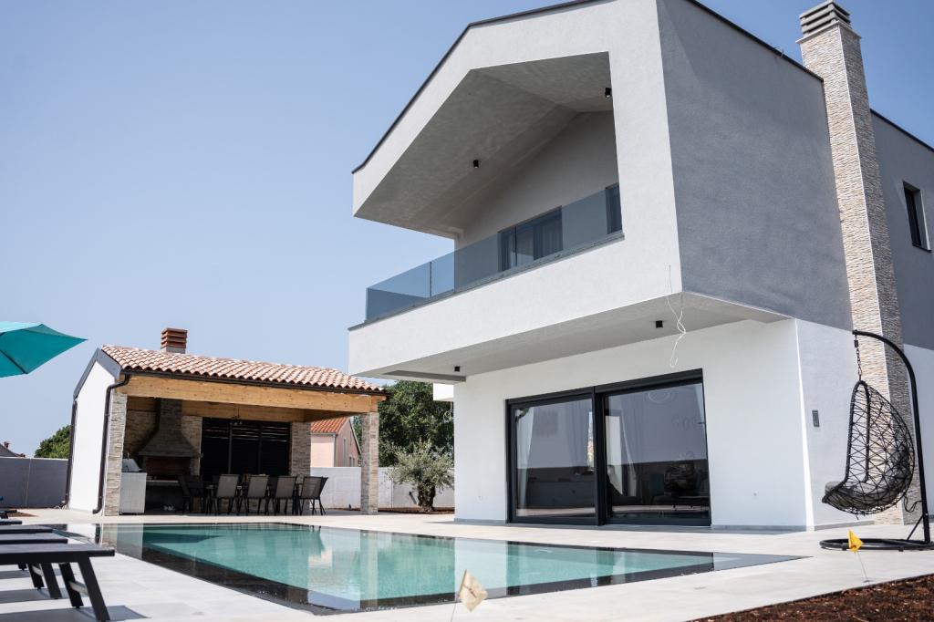 Ez a gyönyörű villa egy nagyon csendes helyen, Rebićiben, Barbanban található, mindössze 2,5 km-re a tengertől, természeti szépséggel és növényzettel körülvéve, így a gondtalan és tökéletes nyaralást szolgálja, távol a városi tömegtől, zajtól és forgalomtól. Tiszta időben a ház első emeletén lévő erkélyről a tengerre nyílik kilátás. Minden szobához saját terasz tartozik, ahol szükség esetén a magánélet és a béke pillanatait élvezheti. A villa nagyon modern berendezésű, az otthon hangulatát és melegét adva, 2023-ban épült, nagyon modern stílusban, és egy kültéri létesítmény is található benne szabadtéri konyhával, hűtőszekrénnyel és két grillezővel, gázzal és fával. -égő. A környezet speciálisan egy 10 x 3,8 méteres feszített víztükrű medence körüli modern strand és egy gyönyörű, régi olajfákkal és más különféle növényekkel díszített pázsit kombinációja, amely oázist teremt a kikapcsolódáshoz. az udvaron nyugágyak, napernyők és további lehetőségek, mint asztalitenisz, csocsó.