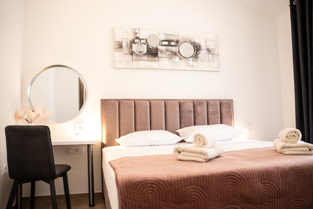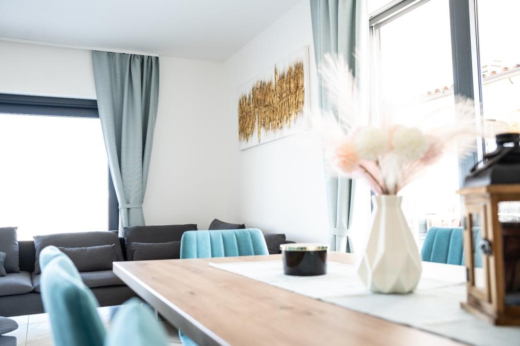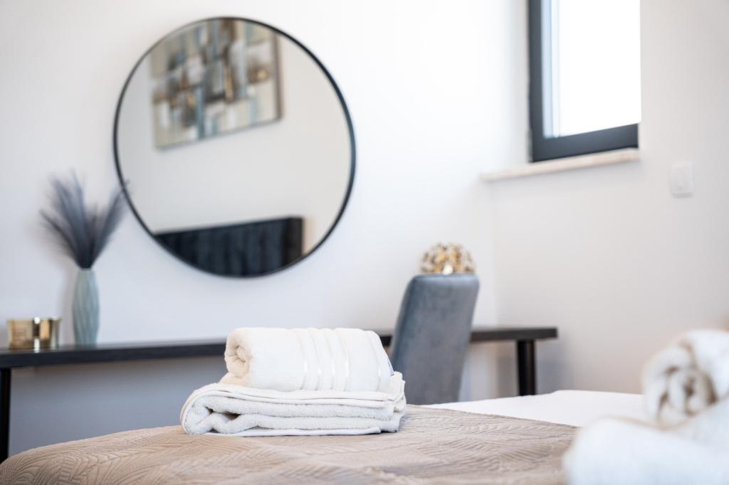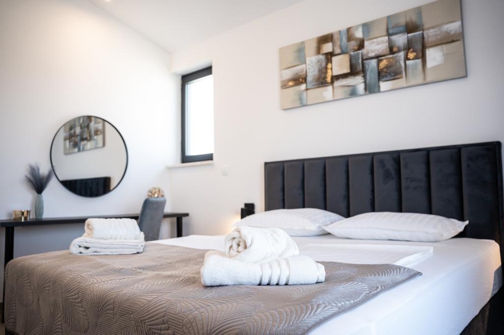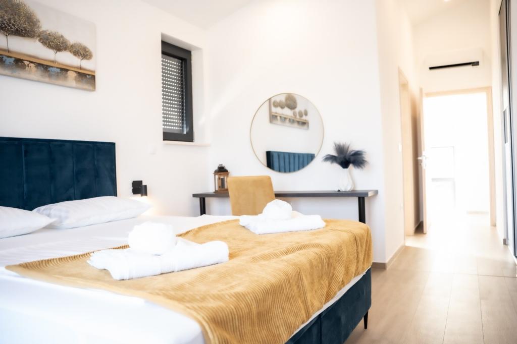 Ez a gyönyörű villa egy nagyon csendes helyen, Rebićiben, Barbanban található, mindössze 2,5 km-re a tengertől, természeti szépséggel és növényzettel körülvéve, így a gondtalan és tökéletes nyaralást szolgálja, távol a városi tömegtől, zajtól és forgalomtól. Tiszta időben a ház első emeletén lévő erkélyről a tengerre nyílik kilátás. Minden szobához saját terasz tartozik, ahol szükség esetén a magánélet és a béke pillanatait élvezheti. A villa nagyon modern berendezésű, az otthon hangulatát és melegét adva, 2023-ban épült, nagyon modern stílusban, és egy kültéri létesítmény is található benne szabadtéri konyhával, hűtőszekrénnyel és két grillezővel, gázzal és fával. -égő. A környezet speciálisan egy 10 x 3,8 méteres feszített víztükrű medence körüli modern strand és egy gyönyörű, régi olajfákkal és más különféle növényekkel díszített pázsit kombinációja, amely oázist teremt a kikapcsolódáshoz. az udvaron nyugágyak, napernyők és további lehetőségek, mint asztalitenisz, csocsó.
