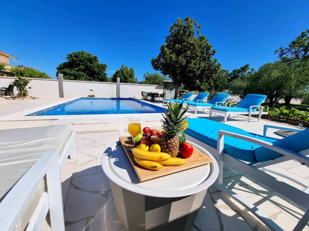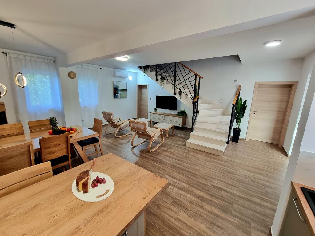 Egy csendes és kellemes sarok a nyaraláshoz. Podlug kis falujában találhatóak vagyunk, Benkovactól 6 km-re délre, az A1-es autópálya benkovaci kijáratától 2 km-re. Három hálószobát és három fürdőszobát kínálunk. A földszinten egy hálószoba, fürdőszoba, konyha és nappali található, az emeleten pedig két hálószoba, két fürdőszoba és egy másik nappali - egy játszószoba. A létesítményben egy kandallós szoba is található. A létesítményhez tartozik egy 8 x 4 méteres kültéri medence is.