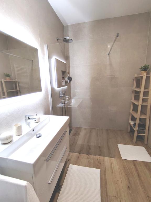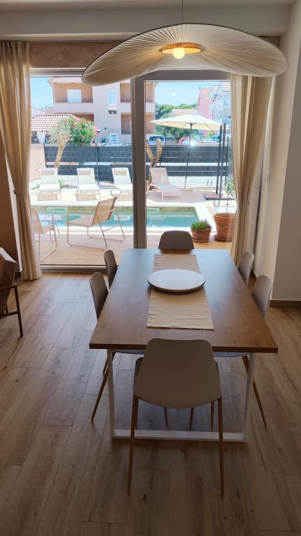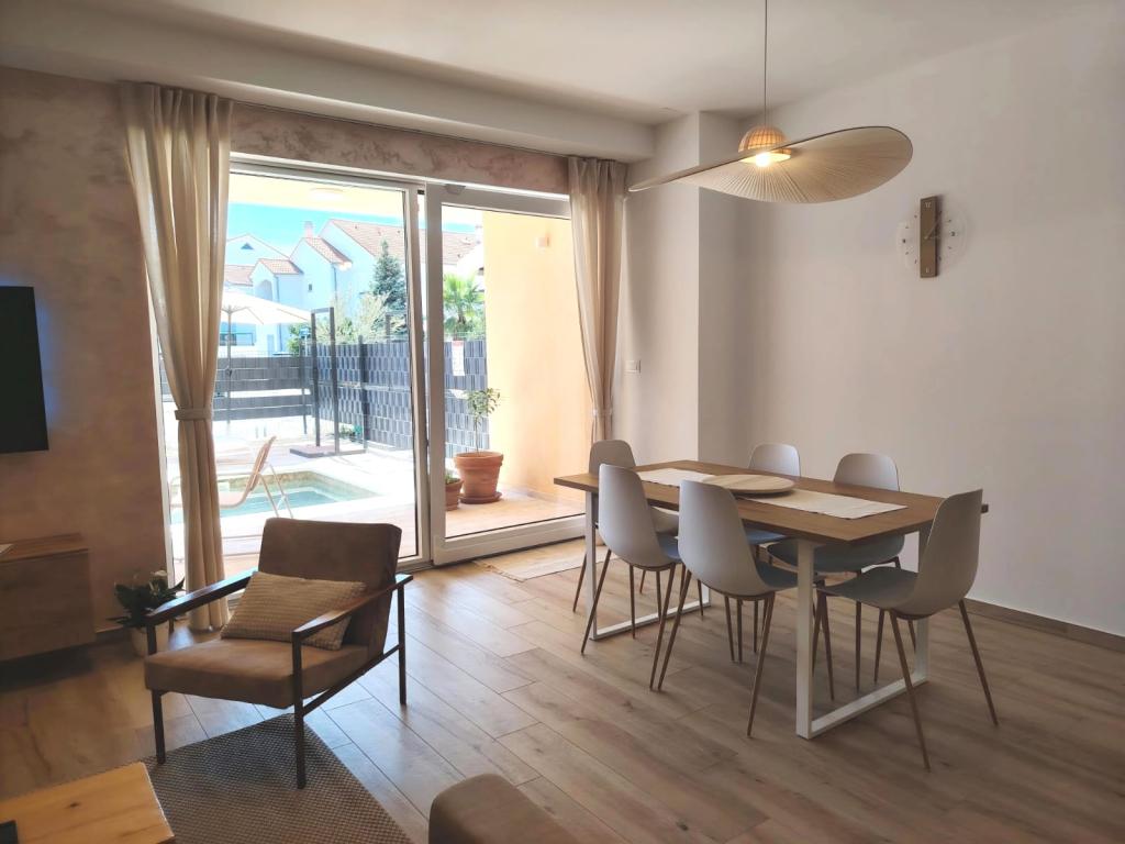Új építésű, kétszintes nyaraló medencével és két különálló lakóegységgel (földszint és emelet). Mindegyik lakóegység 95 négyzetméteres, és 3 hálószobával, konyhával, fürdőszobával, terasszal és nappalival rendelkezik. Parkolás biztosított.