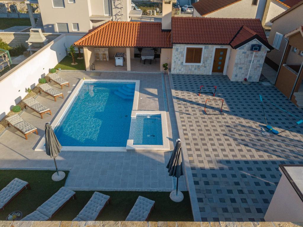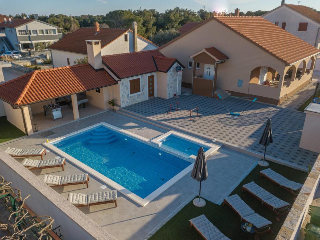 Modern villa úszómedencével, 3 km-re a városközponttól. A létesítményben egy 8x4 méteres úszómedence és egy 3x1,5 méteres gyermekmedence található. Gazdag tartalom gyerekeknek, csocsó, biliárd, asztalitenisz, csúszda, trambulin...