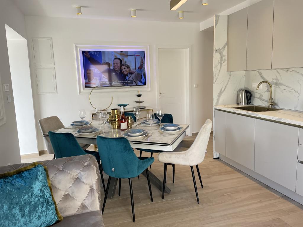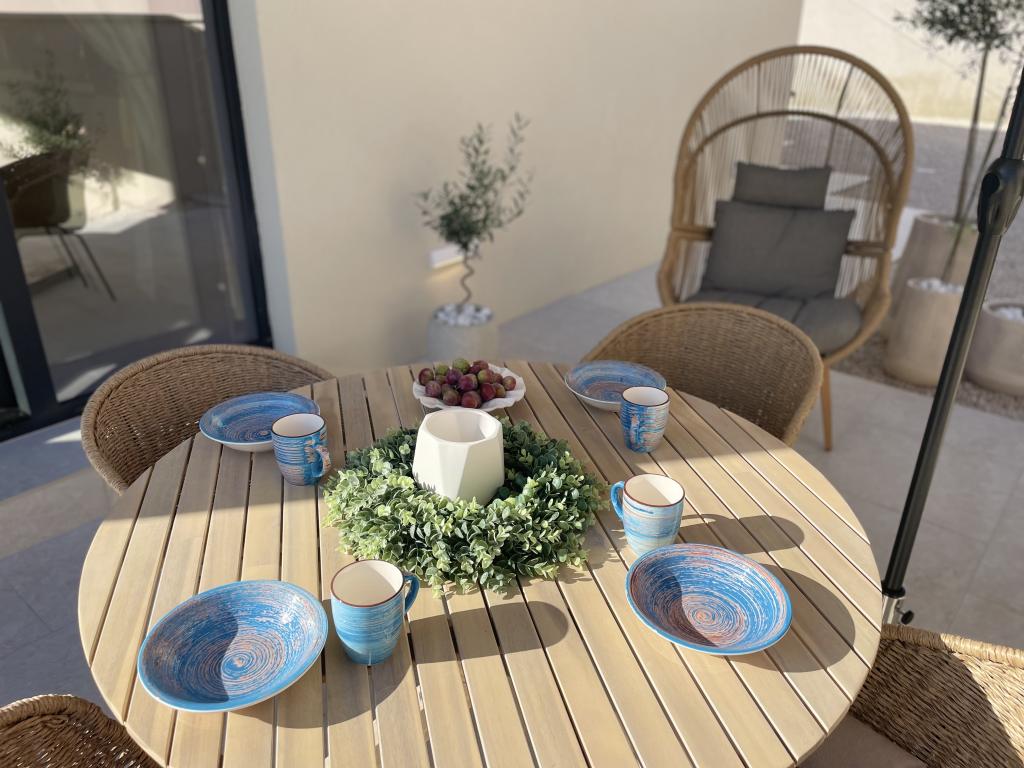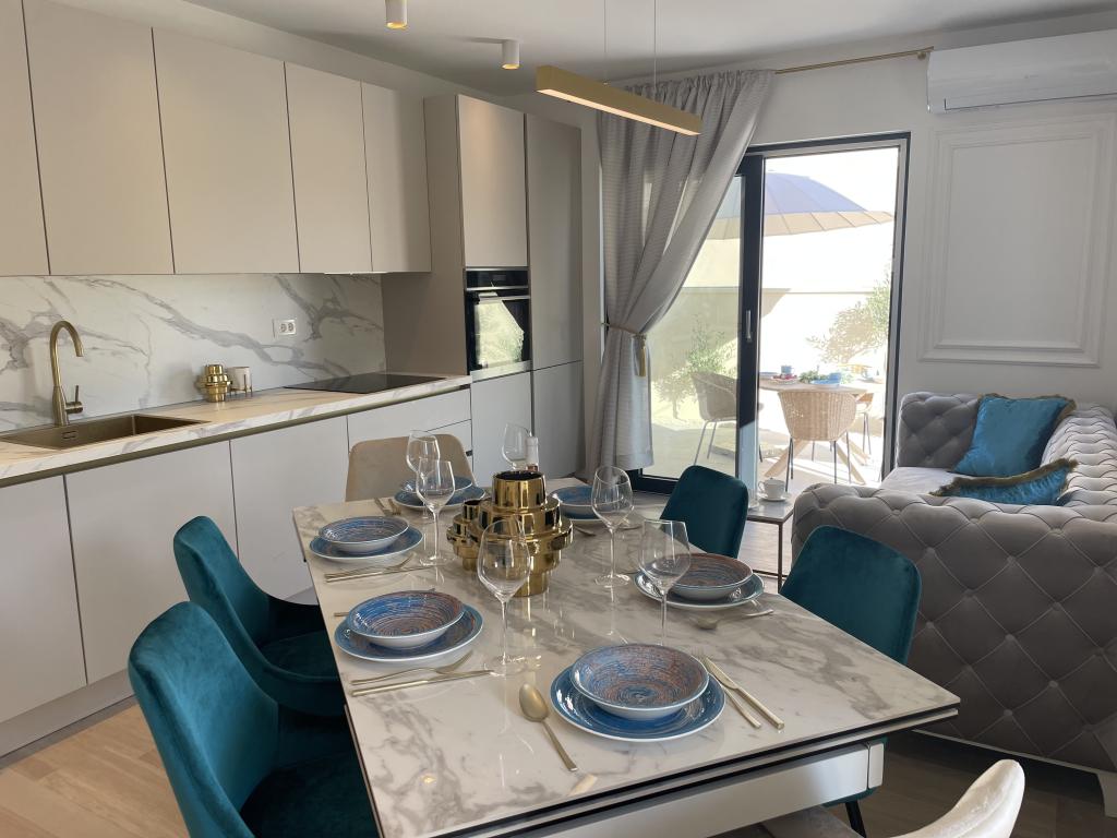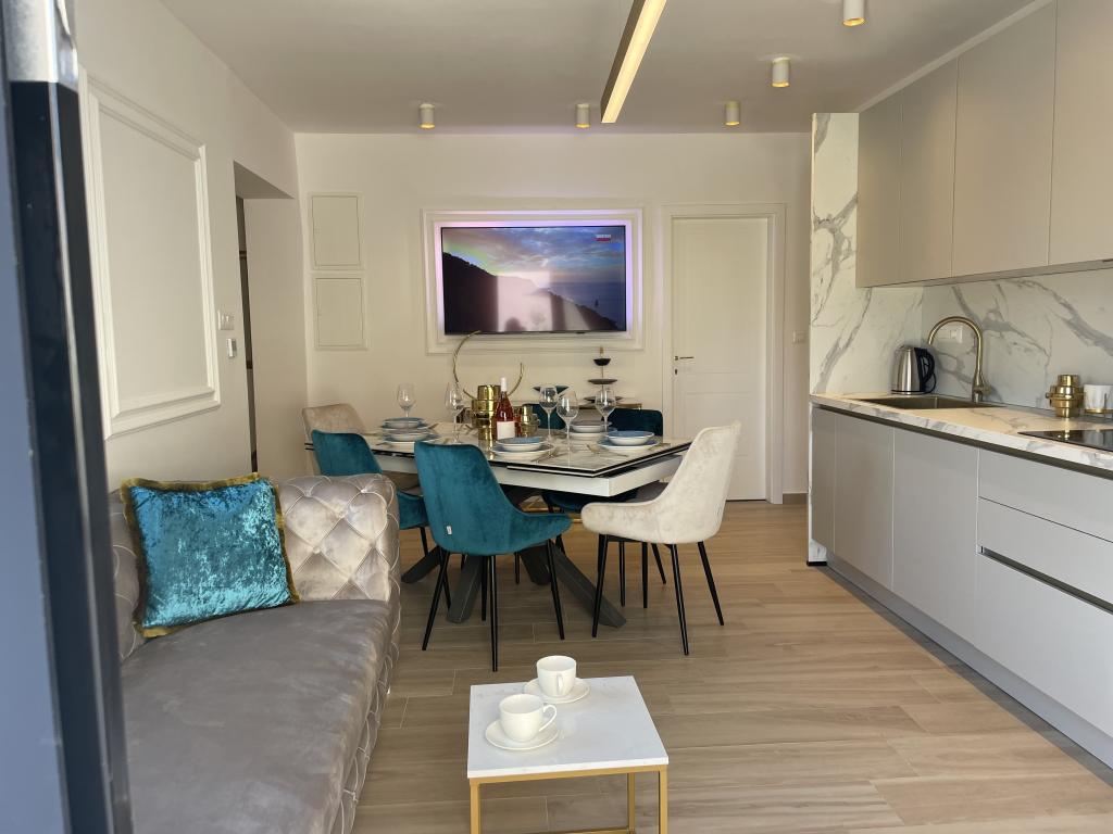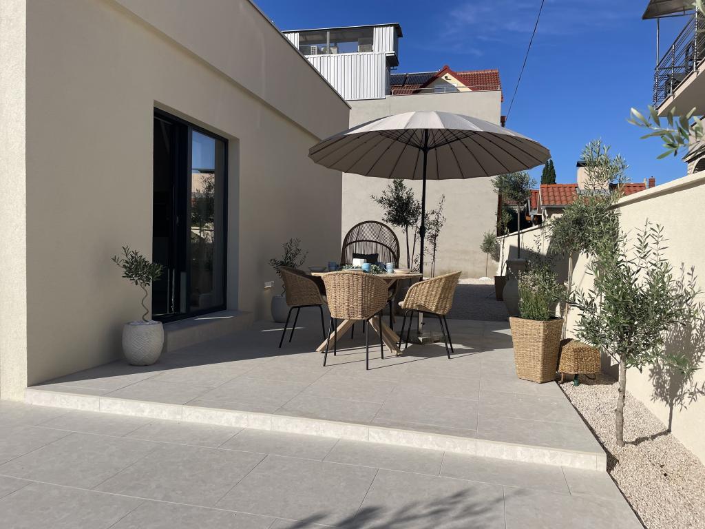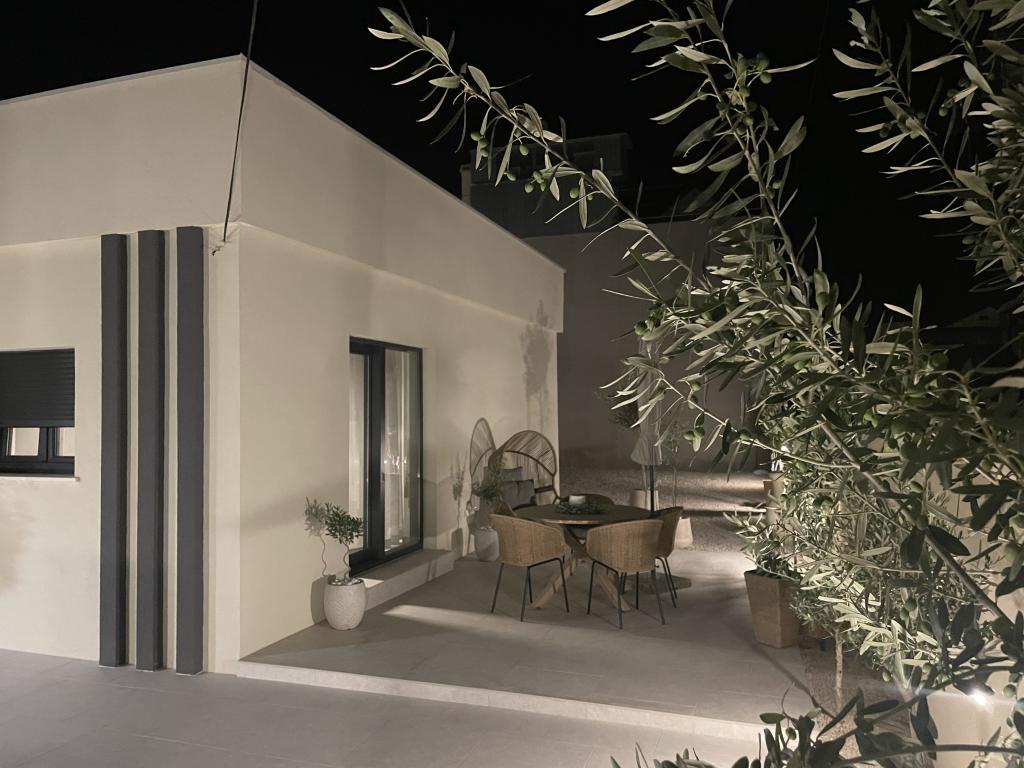 Modern berendezésű villa nagy udvarral és parkolóval. Dizájner bútorokkal berendezett, 10 perc sétára a strandtól és 5 perc sétára a központtól. Az épület 3 hálószobával rendelkezik, teljesen légkondicionált és padlófűtéssel rendelkezik. A ház körüli terület egy egész napos tartózkodásra is alkalmas, különösen a százéves fák miatt, amelyek kivételes árnyékot nyújtanak a forró nyári hónapokban.
