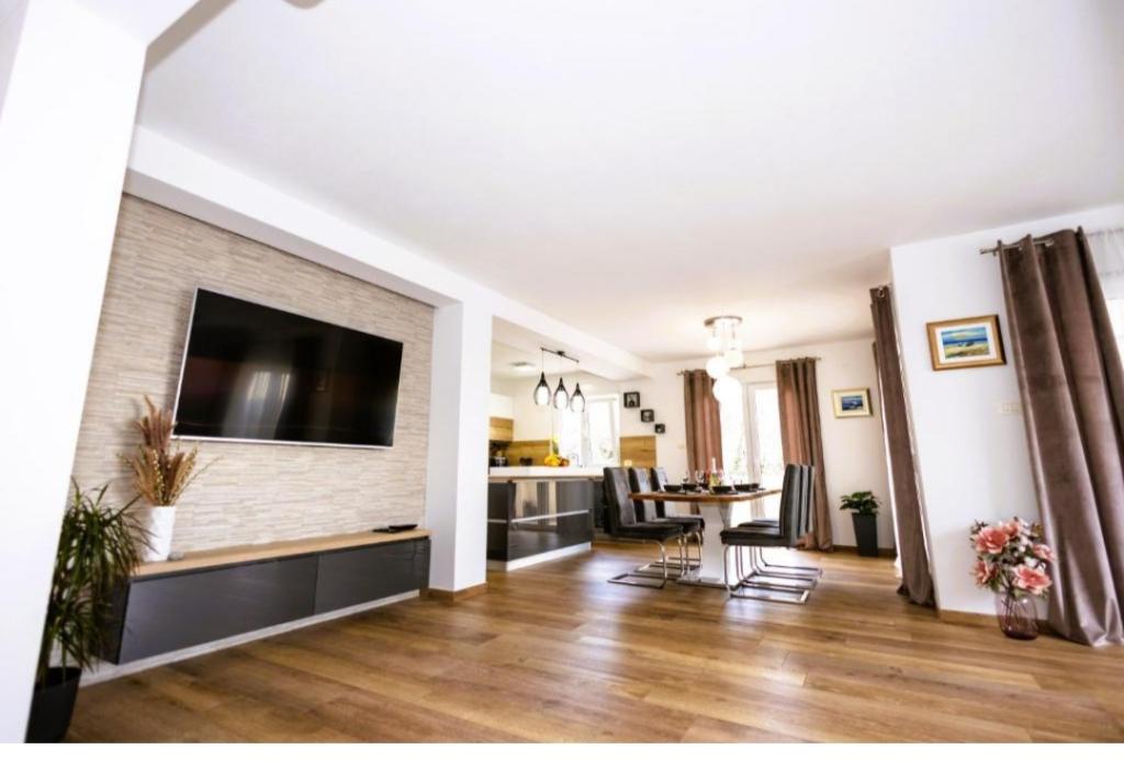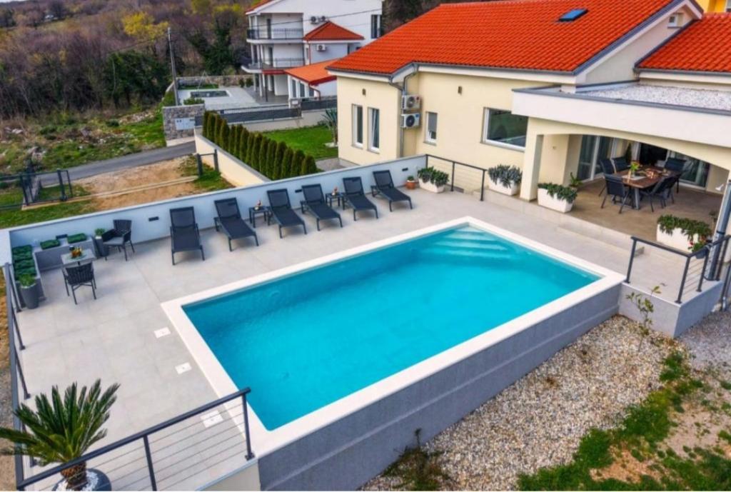 A Villa Pepinela**** rendkívül nyugodt környezetben található, ugyanakkor nagyon közel a tengerhez, minden olyan szolgáltatáshoz és nyári rendezvényhez, amely garantálja a csodálatos nyaralást. Fel van szerelve egy 8x4-es úszómedencével és egy magaslaton elhelyezkedő napozóterülettel, valamint egy nagy terasszal, ahonnan gyönyörű kilátás nyílik a tengerre és Vinodol természeti szépségeire. A házban egy fedett terasszal és kandallóval rendelkező fogadó is található a társasági élethez. A villa zárt garázsban vagy bekerített udvarban kínál parkolási lehetőséget. A legkisebbek számára egy bekerített réten játszóteret alakítottunk ki. A környék számos szabadidős sportolási lehetőséget kínál. A villa kellemes és teljesen felszerelt belső tere felejthetetlen nyaralást tesz lehetővé.