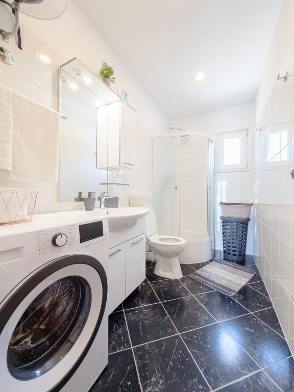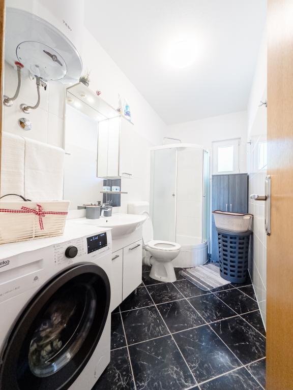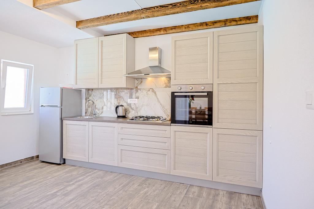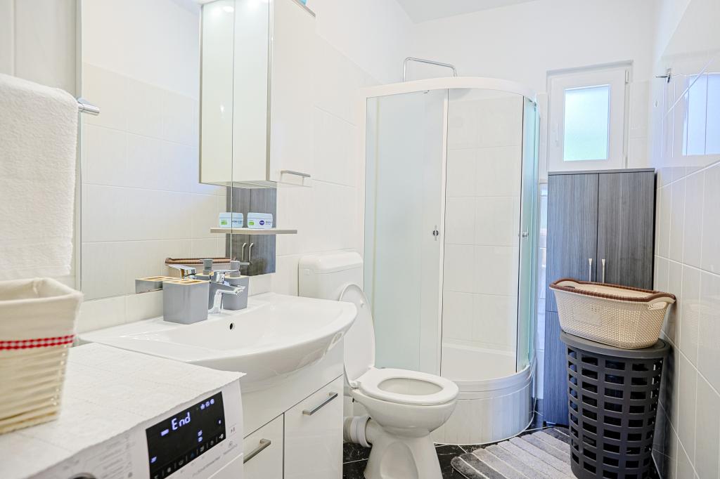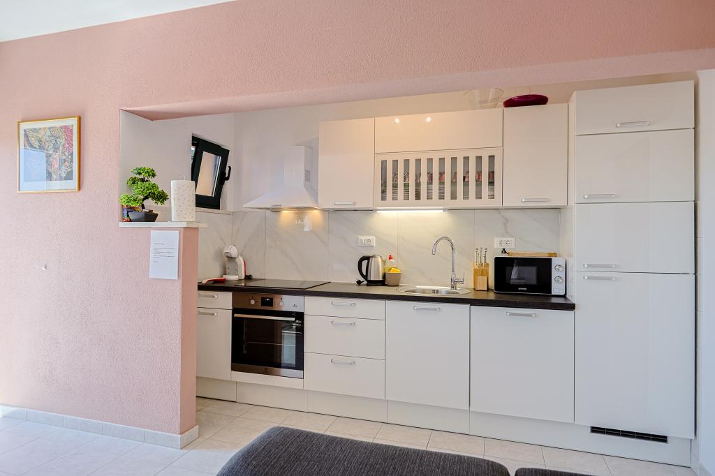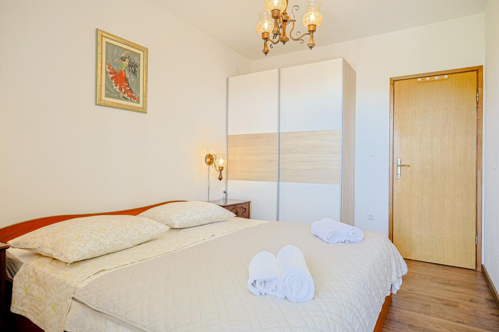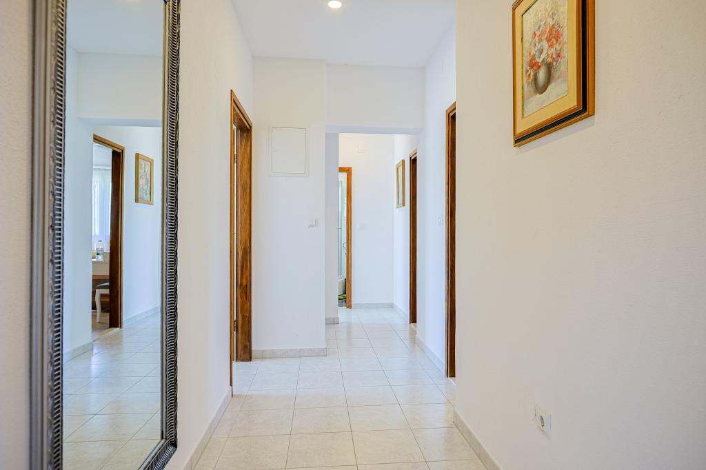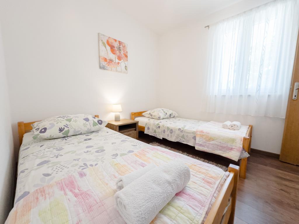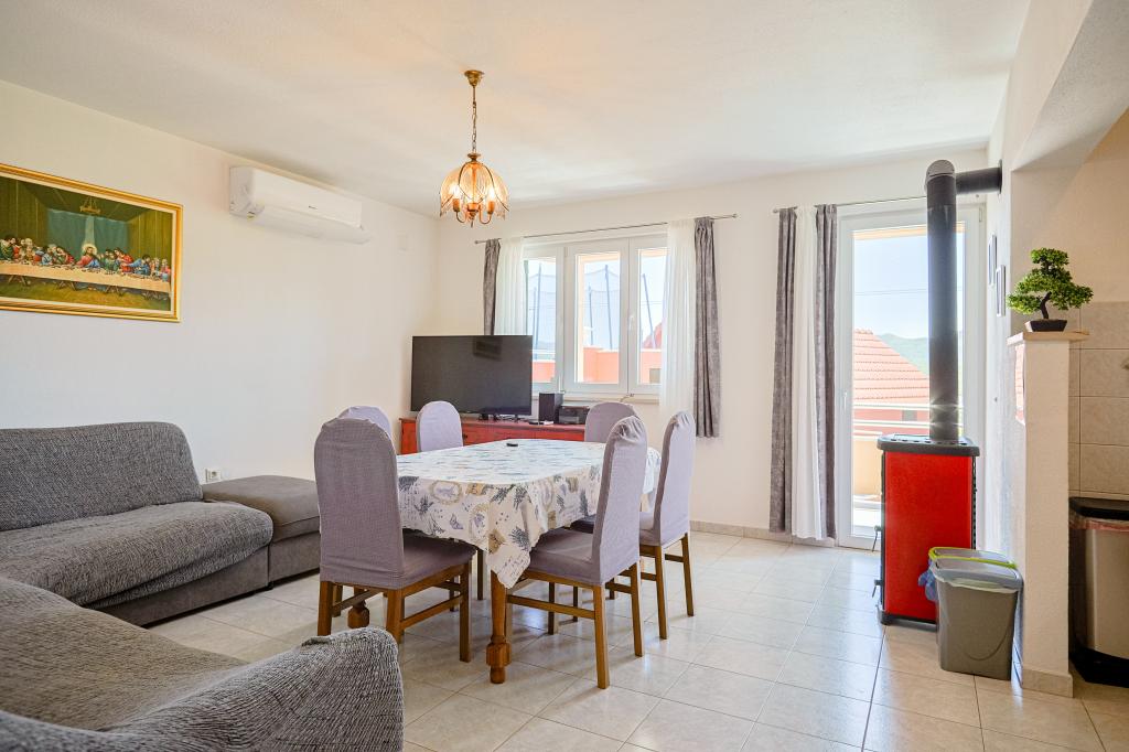 A tágas nyaraló 12 fő részére nyújt teljes élményt és kikapcsolódást. Tágas kert fűtött 7x4 méteres úszómedencével, víz- és légmasszázzsal a szórakozás és a kikapcsolódás érdekében. A medence mellett található a nyári konyha étkezővel és fürdőszobával, melyhez szabadtéri grillező is tartozik. Minden apartmanban 3 hálószoba, 2 fürdőszoba, teljesen felszerelt konyha, tágas nappali okostévével, valamint a medencére és a Biokovo-hegyre néző erkély található. Az ajánlat tartalmaz egy trambulint a legkisebbeknek, egy fedett grillezőt, 5 parkolóhelyet és egy nagy teraszt. Ennek az ingatlannak az egyedisége abban rejlik, hogy a ház egy félreeső helyen található, így biztos lehet benne, hogy teljes magánéletben lesz része. A ház elhelyezkedése kiváló, mert 25 perc autóútra van az Adriai-tengertől, 10 percnyire üzletek, kávézók, éttermek. Makarska, Imotski, Split, Omiš, Međugorje, Makarska és más vonzó helyek kevesebb, mint 20 perc-1 óra autóútra találhatók tőlünk. Az autópálya bejárata 9 km-re található.