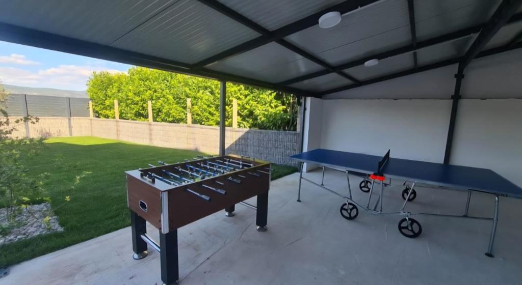 A Villa Olea egy gyönyörű és luxus villa, amely egyedülálló hangulatot kínál vendégeinek a pihenésre és kikapcsolódásra az Imotska régió szívében, ahonnan felejthetetlen kilátás nyílik az Imotsko-hegységre, valamint a Plavo és a Crveno-tóra. A villához egy nagy, privát végtelenített medence, egy szórakoztató részleg tartozik, ahol csocsó, asztalitenisz, darts és játszótér, valamint egy kényelmes grillező és szórakoztató részleg, amelyben kültéri konyha és minibár is található. A medence mellett kényelmes nyugágyak, kültéri zuhanyzó és egy pavilon található a kellemes társasági élethez és pihenéshez. A villában 2 teljesen felszerelt konyha, 5 fürdőszoba, 6 hálószoba king size ággyal és 2 kényelmes kanapéággyal, két tágas nappali található nagy okostévékkel és egy Play Station játékkonzollal a szórakozáshoz. A villa teljesen légkondicionált, ingyenes wi-fi-t, ingyenes parkolást, törölközőket és ágyneműt, vagy mindent biztosít, amire egy felejthetetlen és kellemes nyaraláshoz szüksége lehet. 25 km-re vagyunk a tengertől.