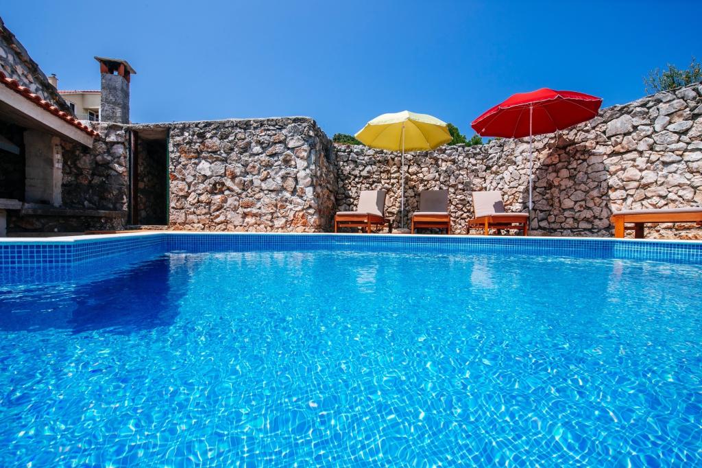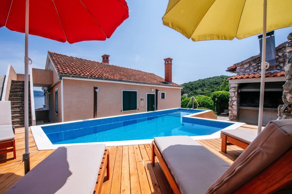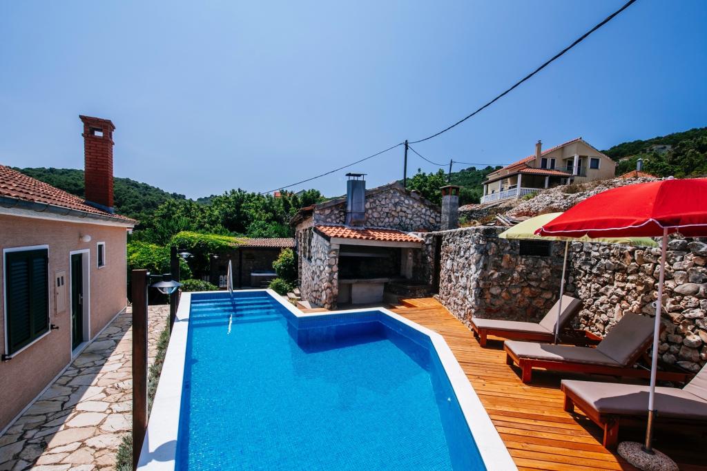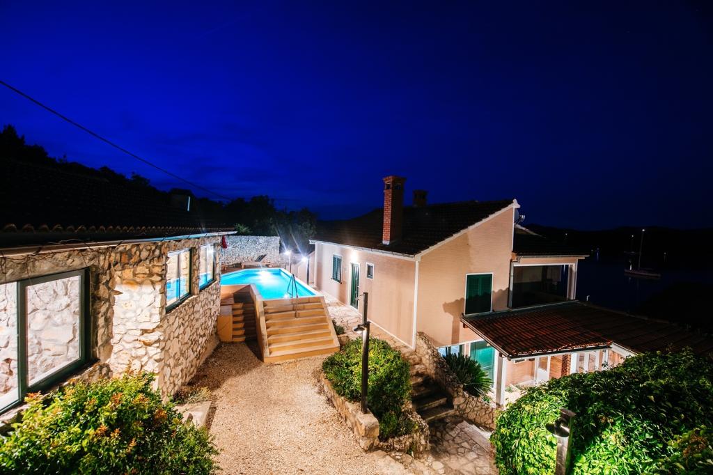 Családi ház 2 szintes. 1. 5 km-re a városközponttól Mali Iz, magas pozíció, 30 méterre a tengertől, 30 méterre a strandtól. Egyéni: alapon 600 m2, kert különböző szinteken - növények és virágok, udvar, medence (3 x 8 m, mélysége 130 cm, 17 05. -27. 09.) beépített lépéseket. Szabálytalan medence. Belső udvar, terasz (15 m2). A házban: internet-csatlakozás, mosógép. Motor hozzáférés 40 m-re található. Parkolás 40 m. Shop 150 m, étterem 100 m, kavicsos strand, sziklás tengerpart 40 m. Jacuzzival és szaunával. A telek a ház mellett még, és gyönyörűen díszített kocsmában egy grillező, kemence, nagy étkezővel, egy bár, fagyasztó, hűtőszekrényben italok, biliárdasztal, darts és 2 WC.