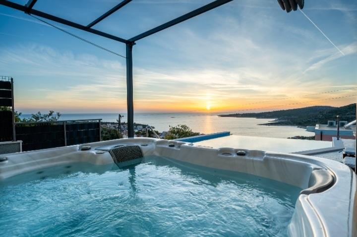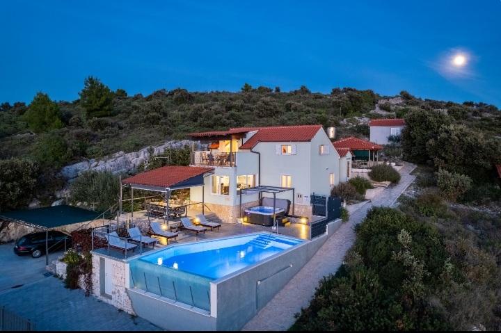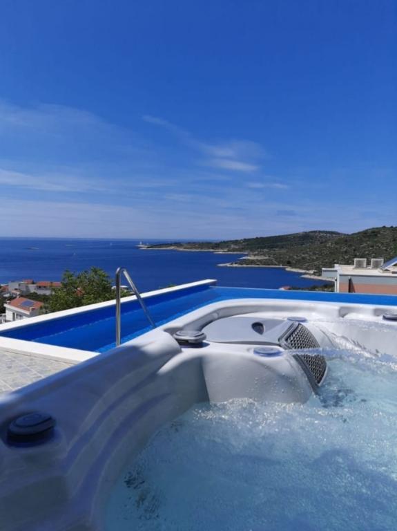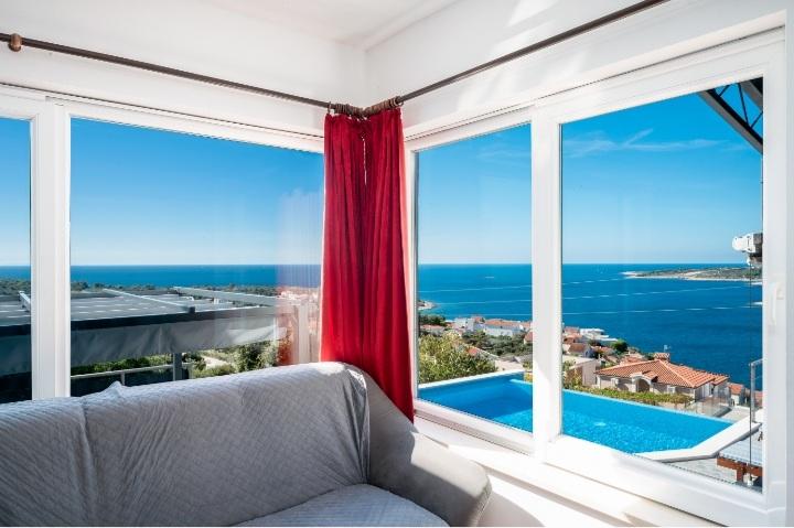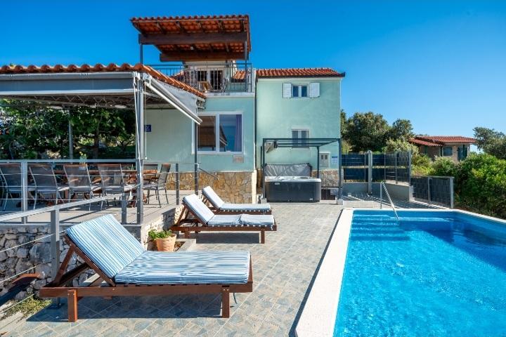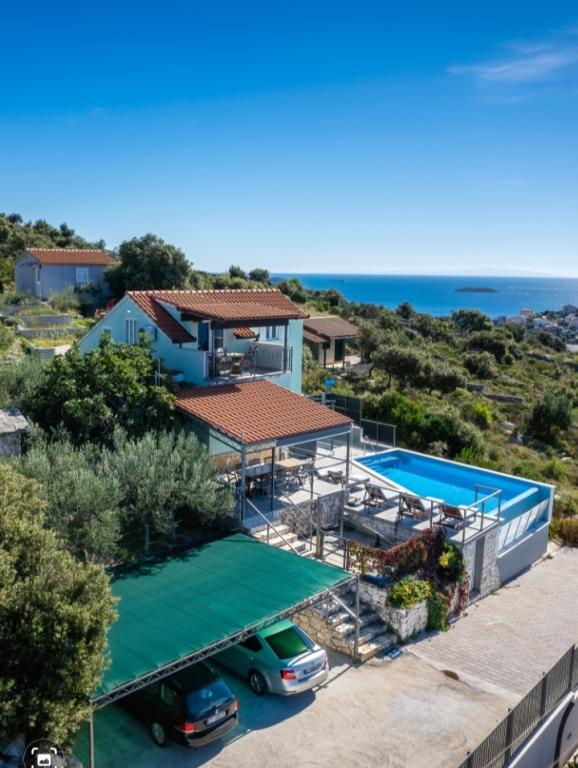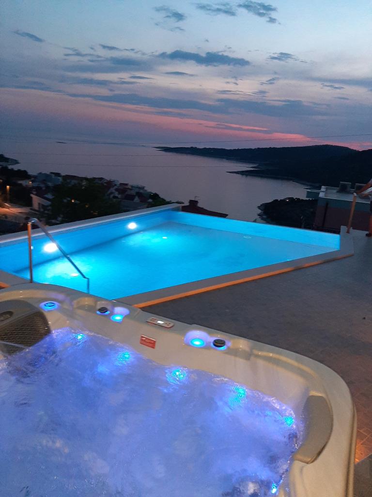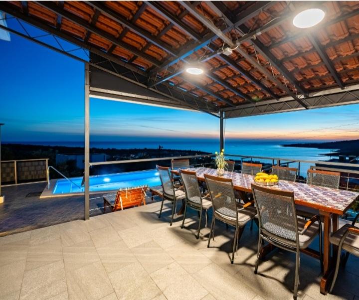 A medencével és fűtött masszázskáddal rendelkező nyaraló egy dombon található, gyönyörű kilátással a nyílt tengerre. Ideális egy békés nyaraláshoz nagy család vagy baráti társaság számára. Ugyanakkor a sport- és szórakozási lehetőségek könnyen elérhetőek; parkosított kerékpárutak, homokos, betonos és kavicsos strandok a kristálytiszta tenger mellett. Éttermek és éjszakai klubok 5-10 perc alatt elérhetők autóval. A házban összesen tíz ágy és két kanapé, két modern konyha, két fürdőszoba és két WC található. A konyhák fel vannak szerelve edényekkel az elkészítéshez és az ételek felszolgálásához szükséges eszközökkel. Az egyik konyhában mosogatógép, kávéfőző, mikrohullámú sütő, vízforraló, kenyérpirító található. A vendégek rendelkezésére áll két fedett terasz, egy nagy nyitott terasz a medence mellett, grillező, parkoló három autónak, úszómedence (40 m2), nyugágyak, szabadtéri zuhanyzó és bekerített játszótér a gyerekeknek. A végső takarítás, a légkondicionálás, a medence karbantartása, az idegenforgalmi adó és az internet benne van az árban. Üdvözöljük!