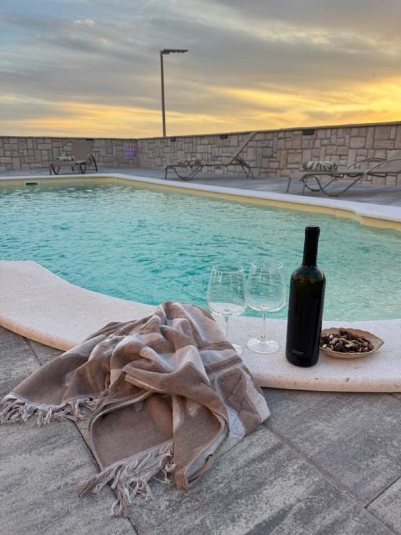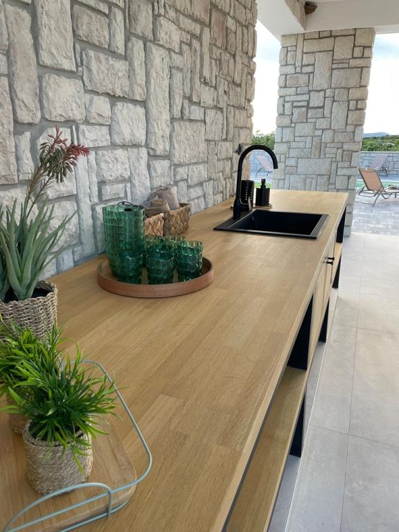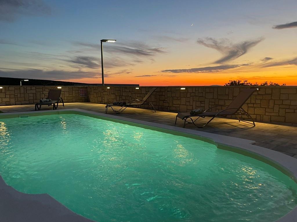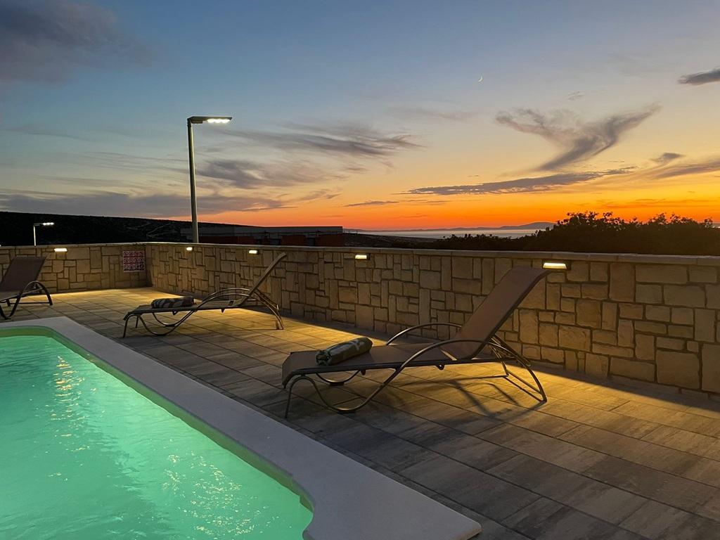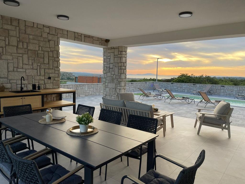 A 2024-ben épült, teljesen új, teljesen és korszerűen felszerelt villa a világ legjobb juhtúrójának fővárosában, a Pag szigeti Kolanban a kikapcsolódás és a csúcsminőségű gasztronómia tökéletes kombinációját kínálja. 1500 méterre található a tengertől és minden szükséges felszereléssel, kiváló kényelmet és pihenési lehetőséget biztosítanak. Tökéletes helyen, csodálatos kilátással a Kolanjsko blato madárrezervátumra, kiváló úszómedencével és kényelmes szaunával, kiváló nyaralást kínál vendégeinknek négy modern berendezésű, minden szükséges kényelemmel ellátott szobában.