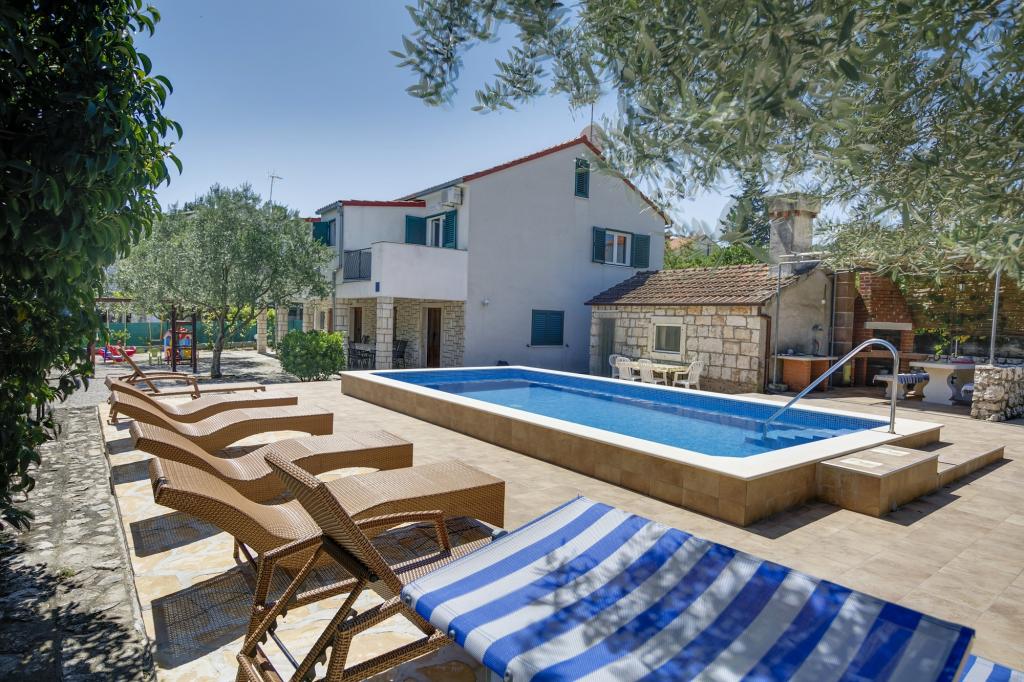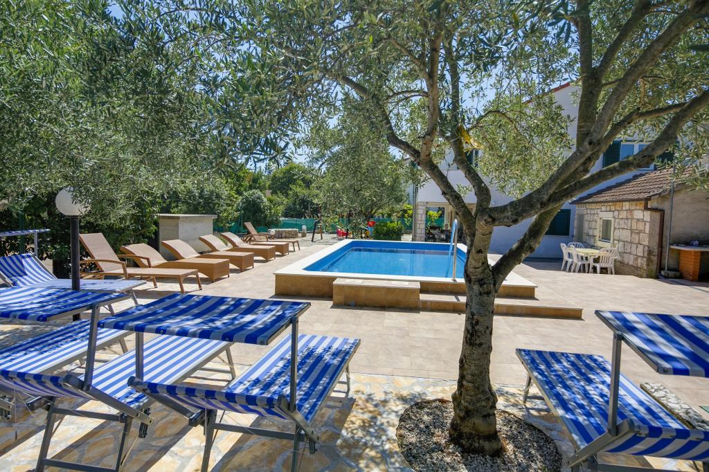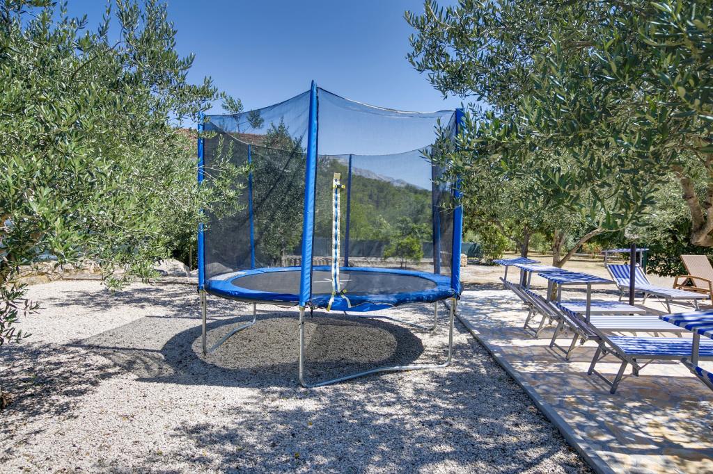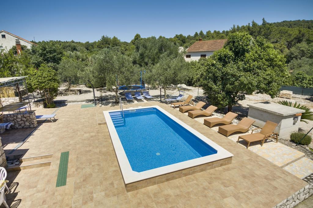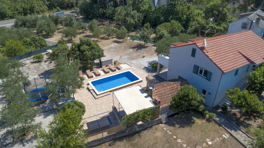 A Villa Ivanka Korčula városának külvárosában, egy tágas, 3500 m2-es telken található. és nagy parkolót kínál. Tartózkodása alatt Ön lesz az egyetlen vendég a házban, a házigazda nincs jelen tartózkodása alatt. A 300 m-re lévő strand a legkönnyebben gyalogosan közelíthető meg. Ez a ház 193m2-es helyet kínál maximum 10 plusz 2 fő részére. A ház két apartmanból áll, az egyik az első emeleten négy hálószobával és egy konyhával, a másik a földszinten egy hálószobával, fürdőszobával és konyhasarokkal rendelkezik. Minden szoba tágas, fürdőszobával, terasszal és légkondicionálóval van összekötve. A ház előtt található egy 24m2-es 1,65m mélységű kültéri medence, mely mellett 11 db minőségi nyugágy, asztalitenisz, profi csocsó és trambulin található. A medence mellett egy nyári konyha található az ételkészítéshez, a konyha mellett egy szabadtéri grill a kellemes társasági élethez, kikapcsolódáshoz. A szálláshelyre kisállat behozatala megengedett. Korcula városa néhány perces kellemes sétára található a tenger mellett.