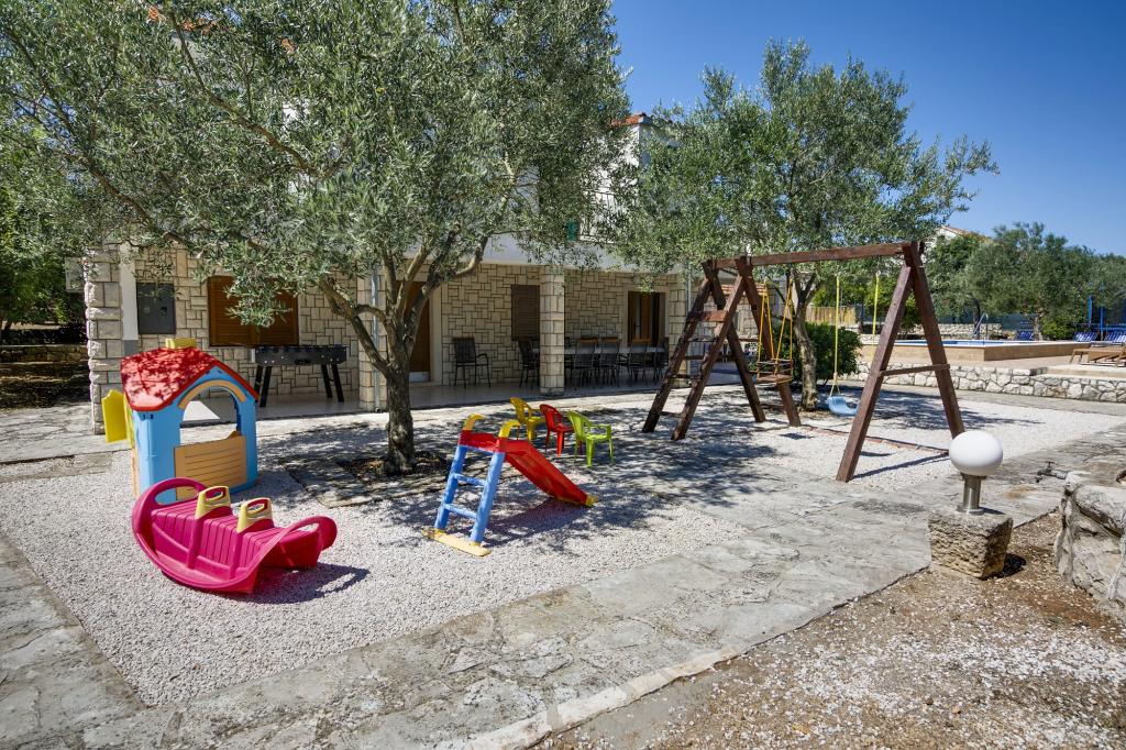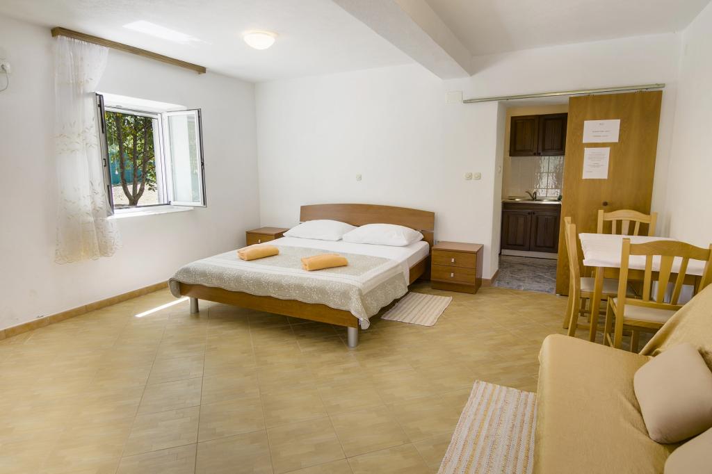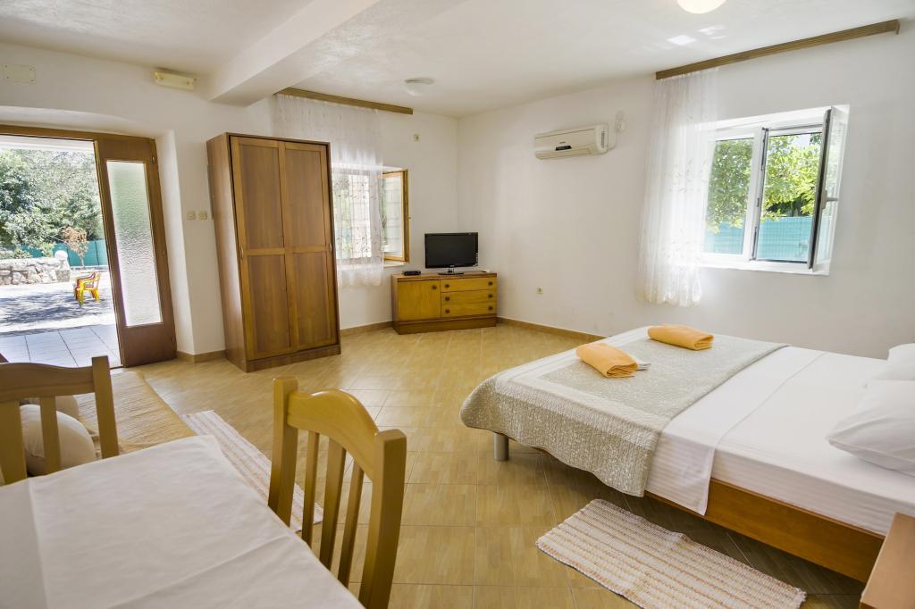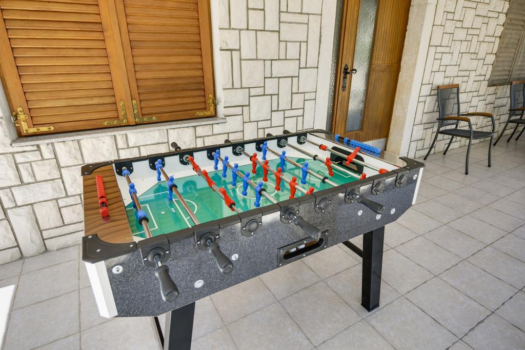 A Villa Ivanka Korčula városának külvárosában, egy tágas, 3500 m2-es telken található. és nagy parkolót kínál. Tartózkodása alatt Ön lesz az egyetlen vendég a házban, a házigazda nincs jelen tartózkodása alatt. A 300 m-re lévő strand a legkönnyebben gyalogosan közelíthető meg. Ez a ház 193m2-es helyet kínál maximum 10 plusz 2 fő részére. A ház két apartmanból áll, az egyik az első emeleten négy hálószobával és egy konyhával, a másik a földszinten egy hálószobával, fürdőszobával és konyhasarokkal rendelkezik. Minden szoba tágas, fürdőszobával, terasszal és légkondicionálóval van összekötve. A ház előtt található egy 24m2-es 1,65m mélységű kültéri medence, mely mellett 11 db minőségi nyugágy, asztalitenisz, profi csocsó és trambulin található. A medence mellett egy nyári konyha található az ételkészítéshez, a konyha mellett egy szabadtéri grill a kellemes társasági élethez, kikapcsolódáshoz. A szálláshelyre kisállat behozatala megengedett. Korcula városa néhány perces kellemes sétára található a tenger mellett.
