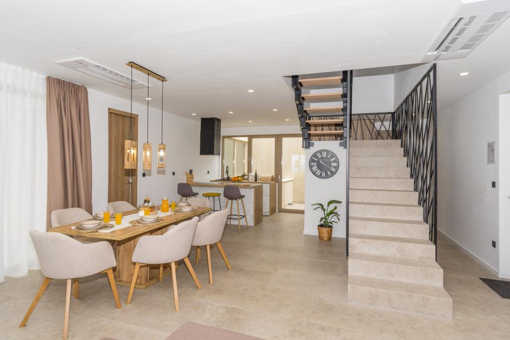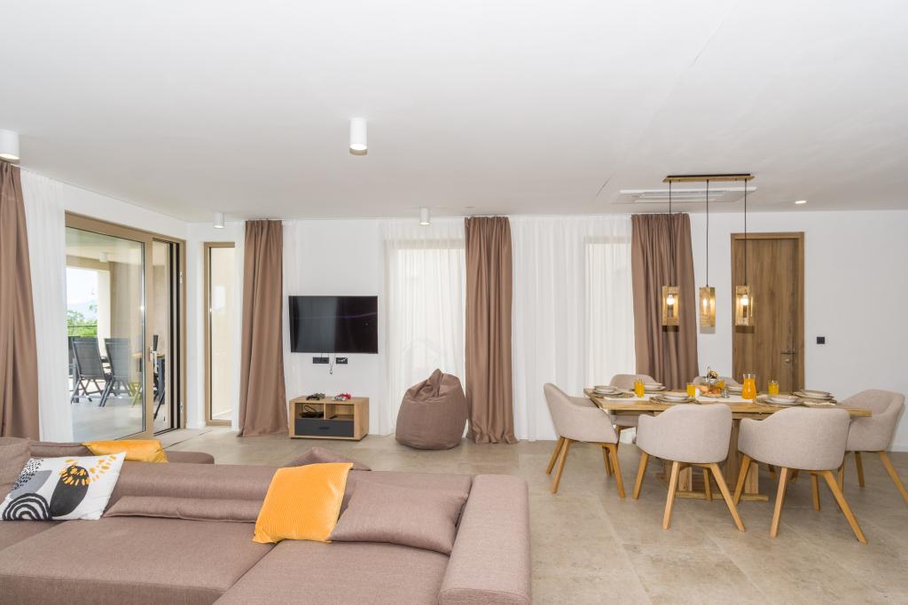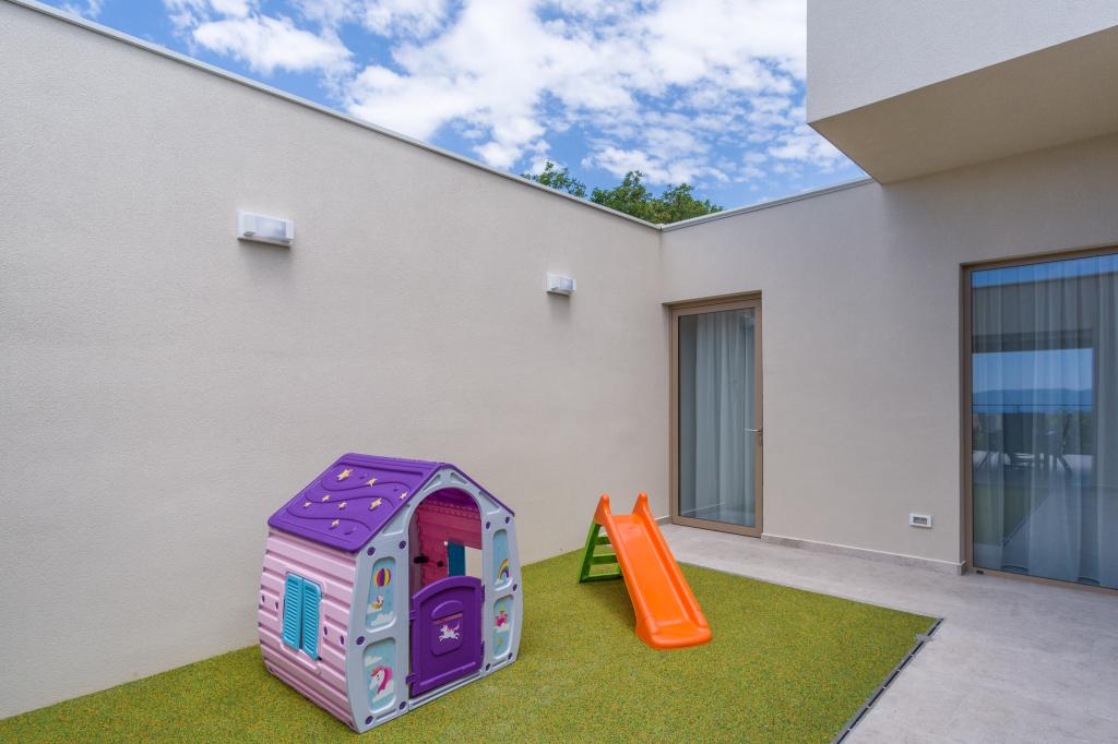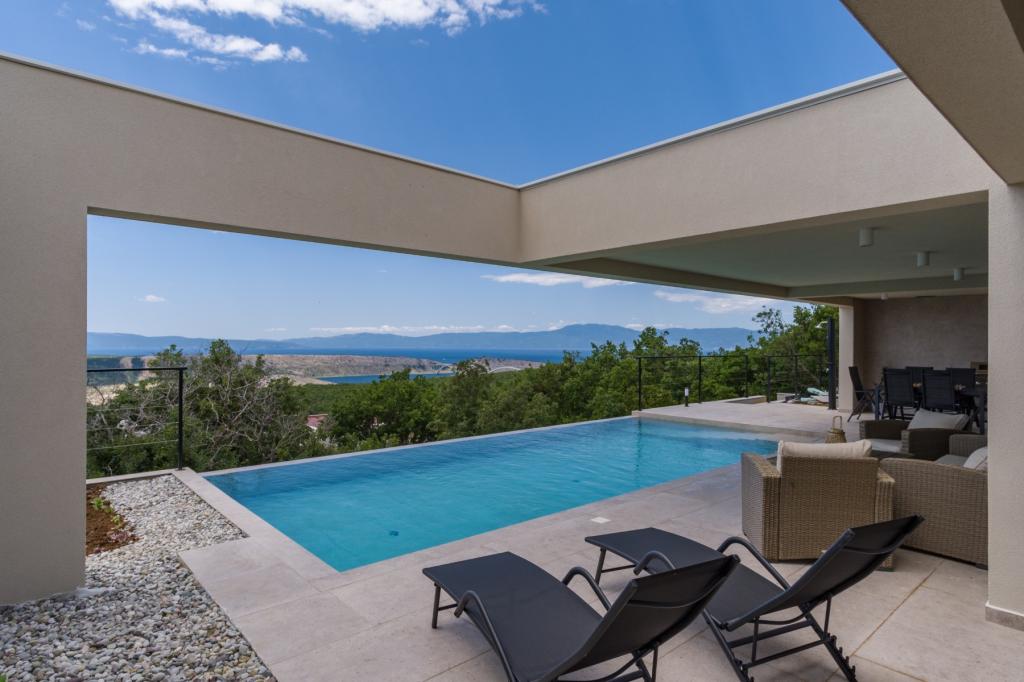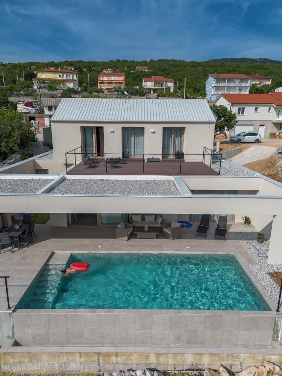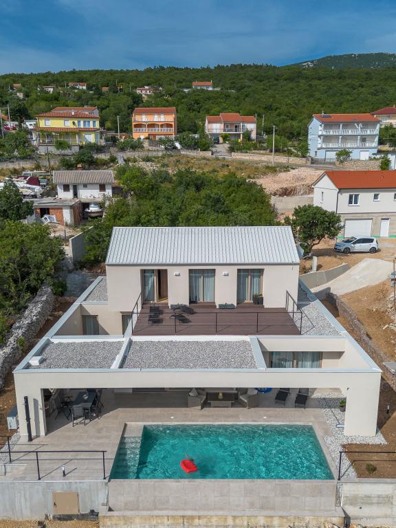 Új. Egy teljesen felszerelt új villa 9x4 m-es medencével Šmrikában, Crikvenica üdülőhely közelében található. A villa csendes helyen található, és el van rejtve a szem elől. A ház minden sarkából kilátás nyílik a tengerre, Krk szigetére, Cres szigetére, Isztria, az első emeleti teraszról Rijekára és Abbáziára. A villában 3 nagy hálószoba és fürdőszoba található minden szobában, valamint egy nagy nappali konyhával és étkezővel. A medence mellett egy szabadtéri konyha is található gázgrillel. Hogy a gyerekek ne unatkozzanak, a 4-es játszóállomást, a legkisebbeket pedig házzal és csúszdával ellátott játszótér várja. A felnőttek az edzőteremben lazíthatnak. A konyha mellett van egy kis kert, ahol főzéshez használható fűszerek - bazsalikom, rozmaring, koktélparadicsom... Jadranovo homokos strandjától 4 km a távolság. Mindössze 1 km-re található a Bura gokartpálya és a gyerekek számára rendkívül vonzó szamárfarm.