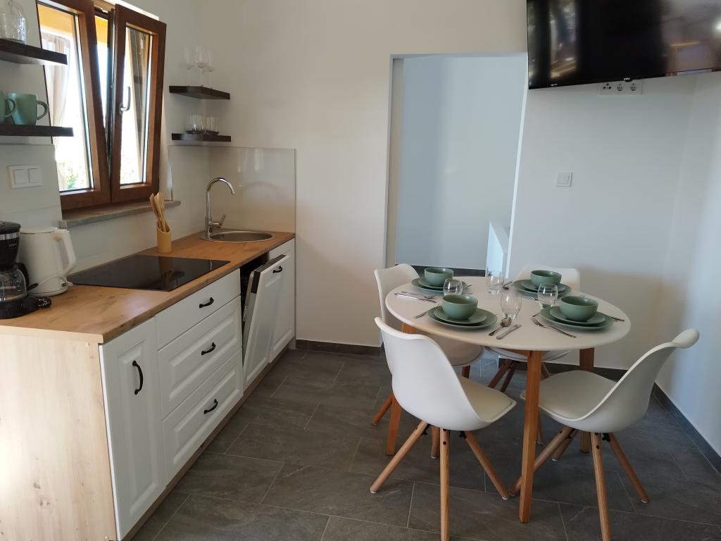 Üdvözöljük a vadonatúj, felújított „Stipe” üdülőházban, amely Lopar felett, egy csendes dombon található – a tökéletes hely a kikapcsolódásra, távol a nyári tömegtől, mégis mindenhez közel. Tartson egy igazi szünetet és lazítson. Ez a bájos, újonnan felújított ház 45 m² belső teret foglal magában két kényelmes hálószobával, egy elegáns fürdőszobával és egy modern konyhával, amely mosogatógépet, mikrohullámú sütőt, hűtőszekrényt és minden szükséges eszközt tartalmaz. Az étkező és a TV-vel felszerelt nappali kellemes helyet biztosít a társasági élethez. Minden szoba légkondicionált a maximális kényelem érdekében. A ház előtt egy tágas, fedett, kőből készült terasz (70 m²) található étkezőasztallal, ülőhelyekkel és grillezővel – ideális hely reggeli kávézásra, kiadós reggelire, egy könyvvel a kezében vagy esti társasági életre a naplementében.