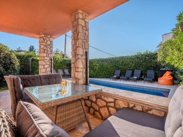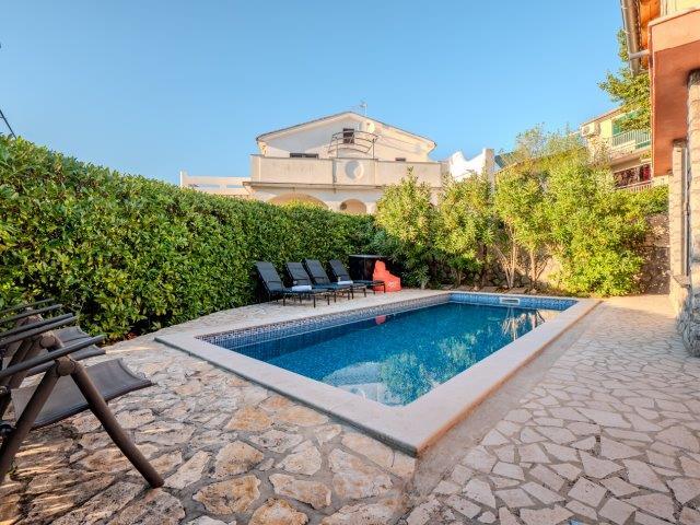Teljesen berendezett villa úszómedencével Malinska - Krk sziget központjának közelében. a központ és minden kényelmi szolgáltatás pár száz méterre található. éttermek vannak a közelben. fedett parkoló az udvarban. klíma és pellet kályha. Ideális nyaraláshoz. Béke és kellemes tartózkodás.
