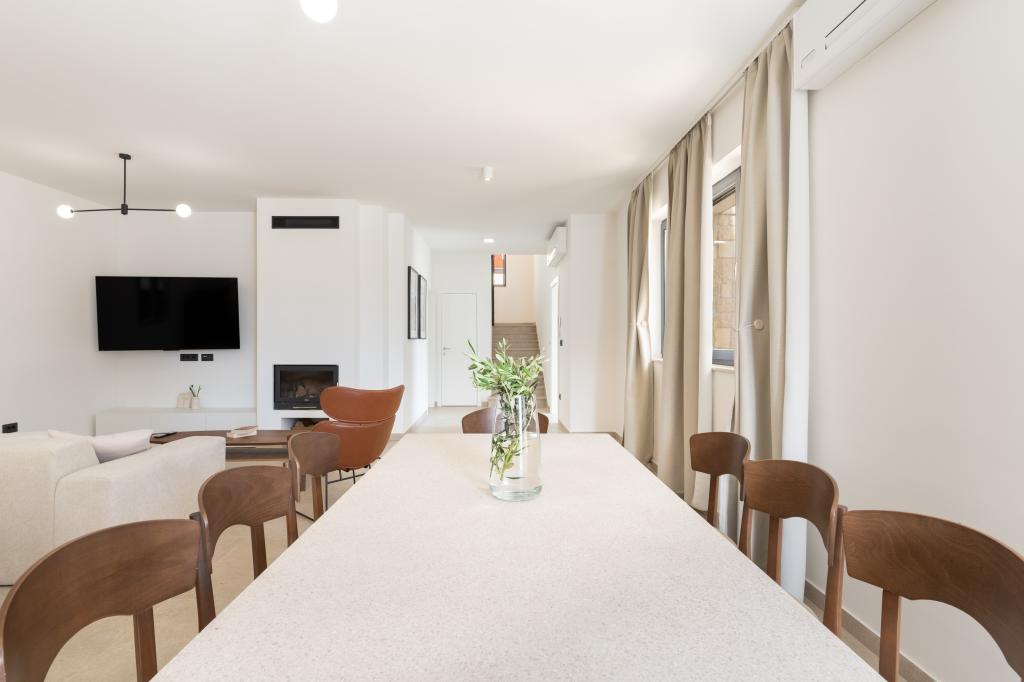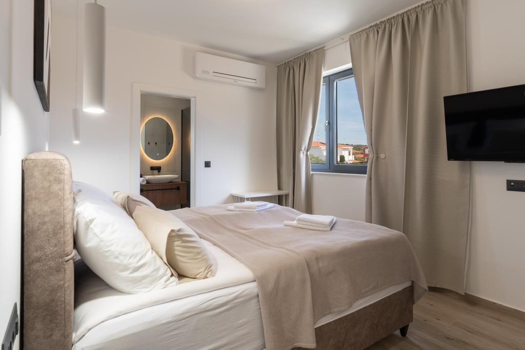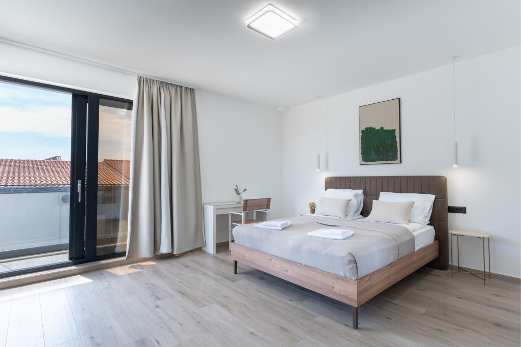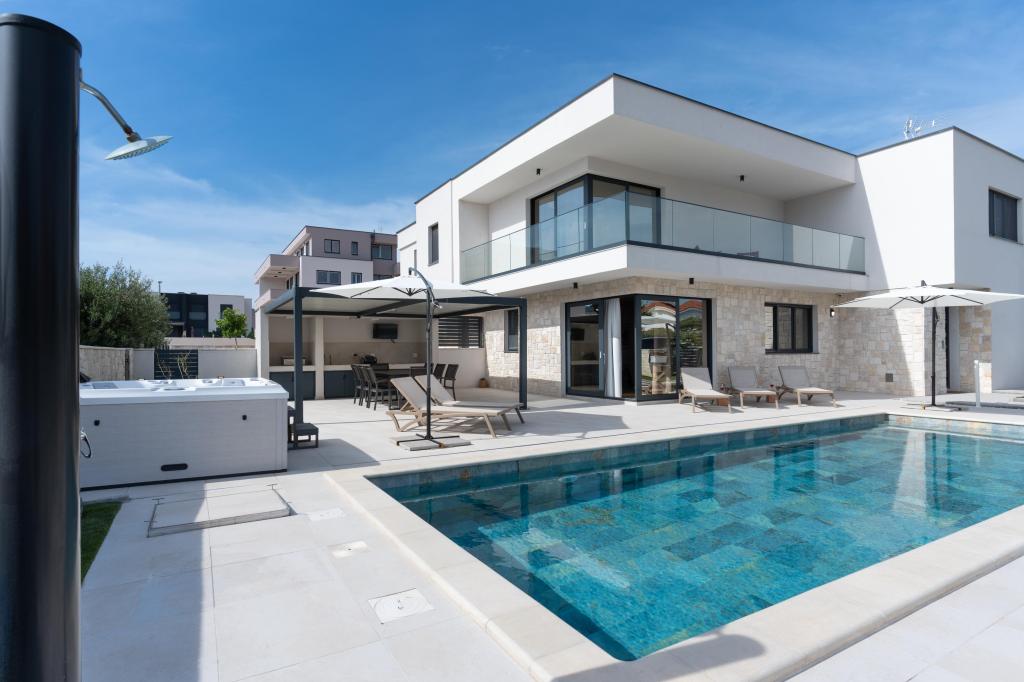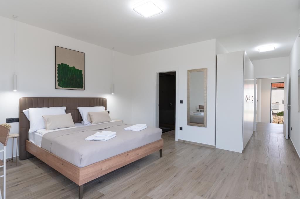 A villa különlegességei közé tartozik a saját fűtött medence, a pezsgőfürdő és a tágas nyári terasz. A Pag szigetén, Mandre csendes tengerparti falujában található Prestige Villa COMPADRE 4 modern berendezésű hálószobával és 4 zuhanyzós fürdőszobával várja vendégeit. A teljesen felszerelt konyhában tűzhely, hűtőszekrény, mosogatógép, sütő és minden szükséges konyhai eszköz található. A vendégek élvezhetik a kültéri grillt, pihenhetnek a kényelmes ülősarokban, vagy lazíthatnak a medence és a jakuzzi mellett. A légkondicionált villa síkképernyős TV-vel, mosógéppel, külön bejárattal, minibárral és kertre néző kilátással is rendelkezik. Ideális családok vagy csoportok számára, ez a villa a luxust és a kényelmet ötvözi egy 230 m²-es elegáns lakótérben.