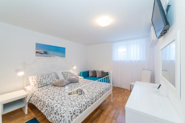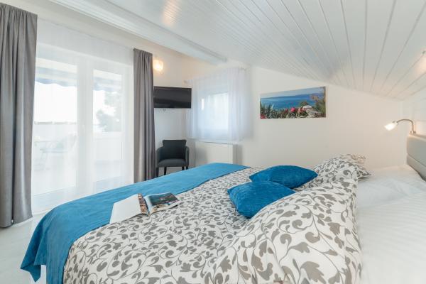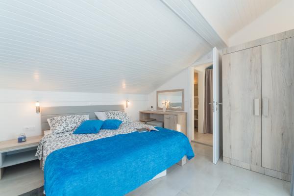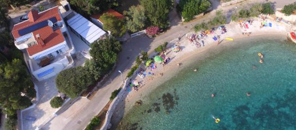 Kellemes és teljesen modern felszereltségű villa úszómedencével Mandre városában, Pag szigetén, 70 km-re Zadartól. 120 m-re van a városközponttól. A villa előtt egy gyönyörű hosszú, apró kavicsos strand található, amely mentén sétány húzódik. A villa ideális egy pihentető nyaraláshoz családdal és barátokkal. A villa minden teraszáról ellenállhatatlan kilátás nyílik a kristálytiszta tengerre és a szigetekre. Az udvaron fedett, fűtött úszómedence ellenáramú úszással és masszázzsal, tengerre néző kültéri zuhanyzó és napozórész, fenyőfák árnyékában pihenőhely. A villa háromszintes (földszint, emelet és tetőtér), 12 fő elszállásolására alkalmas. Minden szinten egy lakóegység található saját bejárattal, SAT/TV-vel, hűtéssel. Minden egységhez tartozik konyha, étkező, nappali és tengerre néző terasz. A földszinti egységben két hálószoba (4 fő), fürdőszoba és WC található. Az emeleten két hálószoba, egy fürdőszoba, egy wc és egy másik hálószoba saját fürdőszobával (6 fő). A tetőtérben egy hálószoba (2 fő) és egy fürdőszoba található