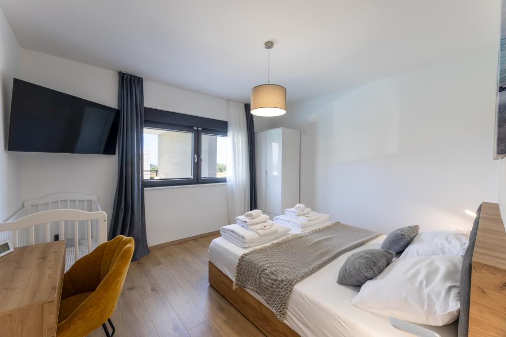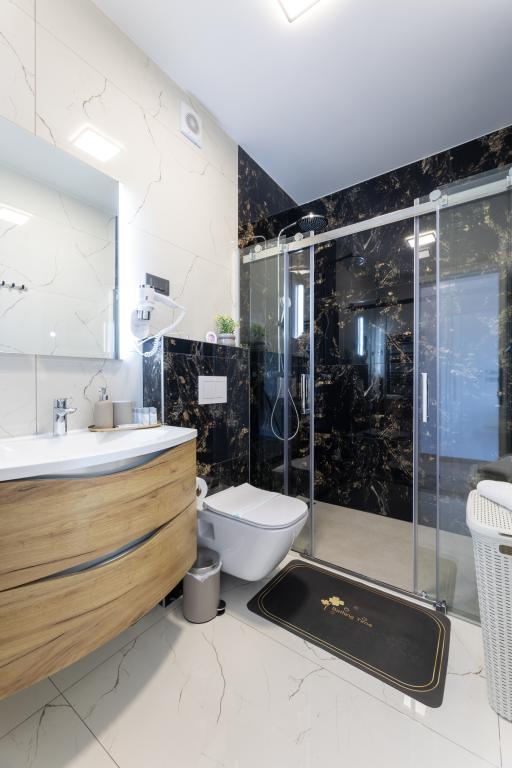 Üdvözöljük a Villa Golden Shine-ban, egy luxus oázisban, amely a festői Primošten szívében található, Horvátországban. A villa a modern elegancia és az autentikus dalmát báj keverékét kínálja, maximális kényelmet biztosítva lélegzetelállító panorámával az Adriai-tengerre. Tágas belső tereivel és luxus úszómedencéjével a Villa Golden Shine ideális választás kikapcsolódáshoz, családi nyaraláshoz vagy romantikus kiruccanáshoz. A villa elhelyezkedése könnyű hozzáférést biztosít a kristálytiszta strandokhoz és Primošten történelmi központjához, míg a kényelem és a magánélet garantálja a kiváló nyaralást gyönyörű környezetben. A privát, fűtött, 8x4 méteres medence enyhén sós vízzel zafírként csillog a napon, napozóágyakkal körülvéve, amelyek gondtalan szórakozást kínálnak. A terasz olyan, mint egy álomerkély, lélegzetelállító panorámával az Adriai-tengerre – tökéletes hely a reggeli kávé vagy egy romantikus este eltöltésére naplementekor. Tapasztalja meg a luxust egy teljesen új szinten a Villa Golden Shine-ban – az Ön rejtett paradicsomában Dalmácia szívében, ahol minden pillanat arannyá válik.
