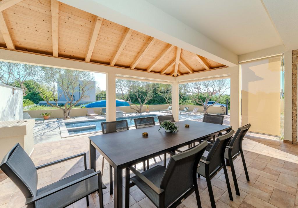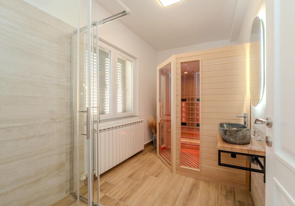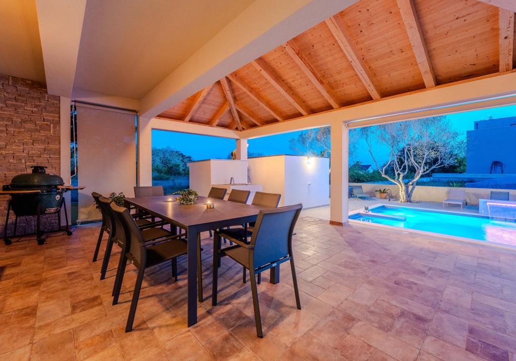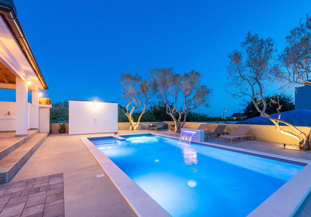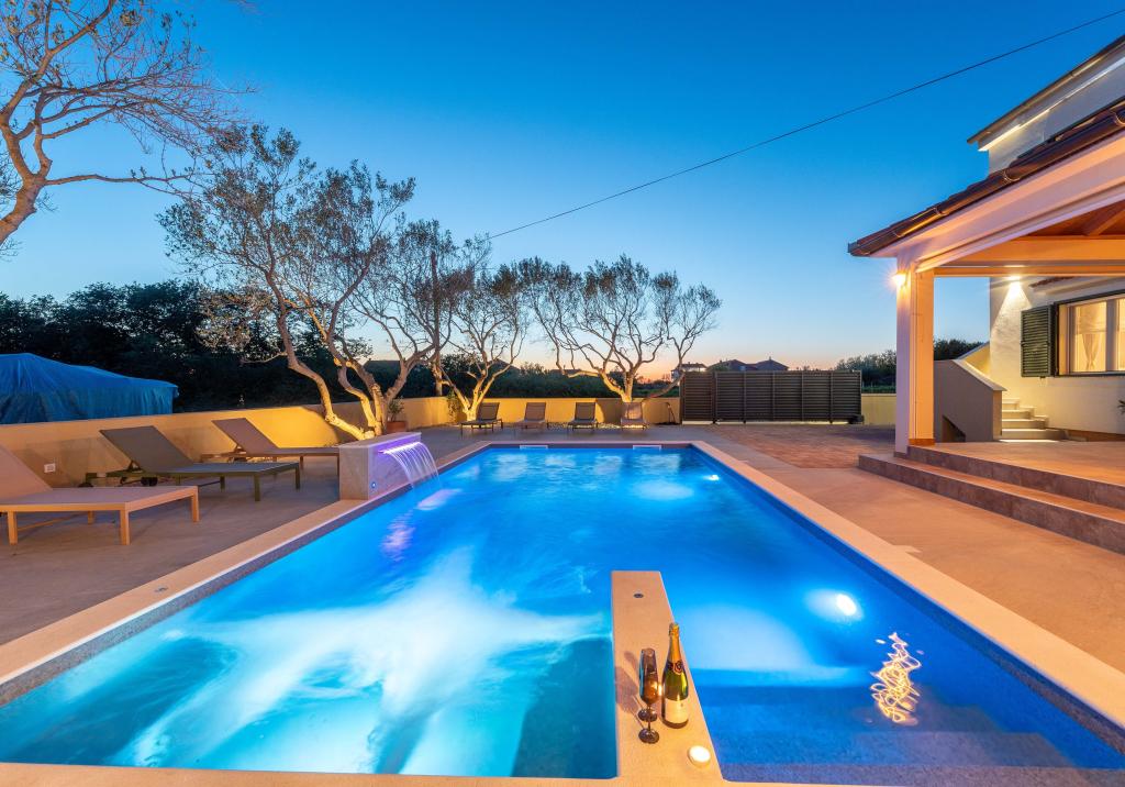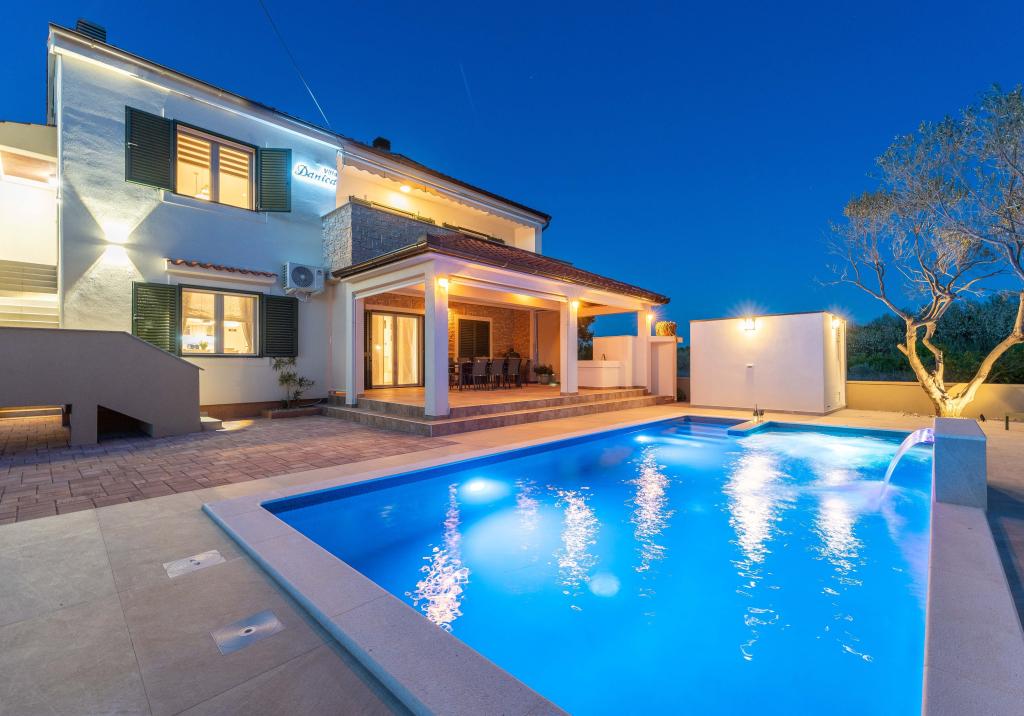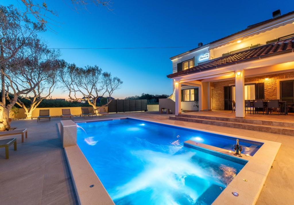 Szeretettel várjuk a Villa Danicában! Luxusvilla Privlakában, Zadar közelében, egy wellness oázis, amely légkondicionált szállást kínál saját sós vizes, fűtött medencével, gyönyörű kilátással a tengerre és tágas erkéllyel. Élvezze a terasz, az asztalitenisz, a biliárd, az edzőterem, az ingyenes parkolás és a gyors wifi kényelmét. A villában szauna is található. Szeretettel várjuk minden korosztályú vendégünket, beleértve a fiatalabbakat is, és háziállatokat is be lehet vinni. A tágas villa teljesen felszerelt konyhával rendelkezik mosogatógéppel, sütővel és mikrohullámú sütővel, egy kényelmes nappalival, ahol bőséges ülő- és étkezősarok, 4 hálószobával és 5 zuhanyzós fürdőszobával. Törölköző és ágynemű biztosított a kényelem érdekében. Élvezze a hangulatot a kandalló mellett, amely a szálláshely része. A villa vendégei Privlakában és környékén számos tevékenységben vehetnek részt, például lovagolhatnak, kerékpározhatnak és túrázhatnak. Nin, a legrégebbi horvát királyi város, 4 km-re található a szállástól.
