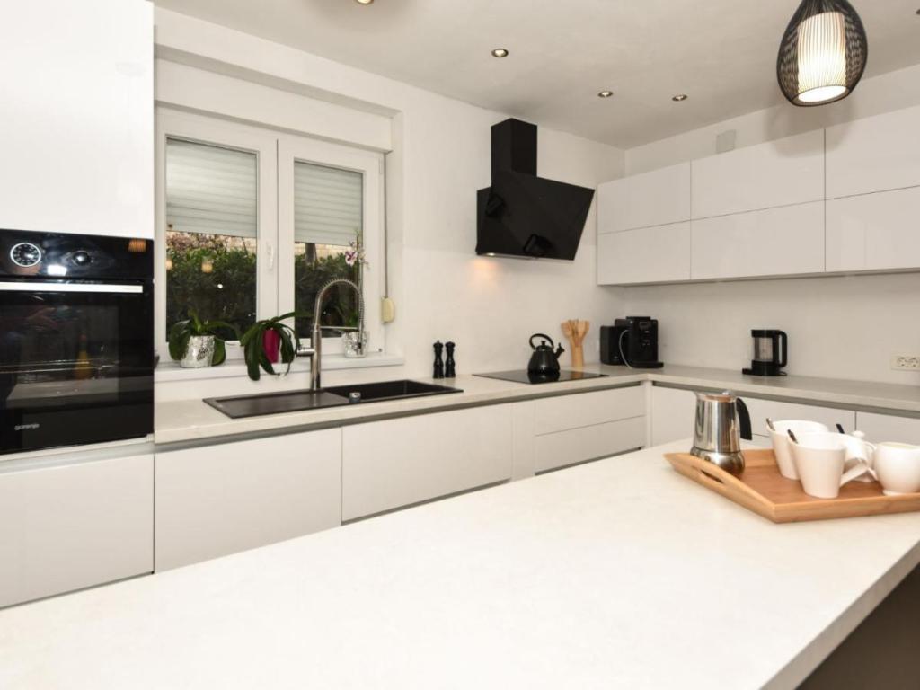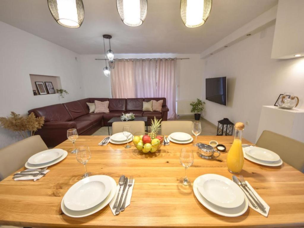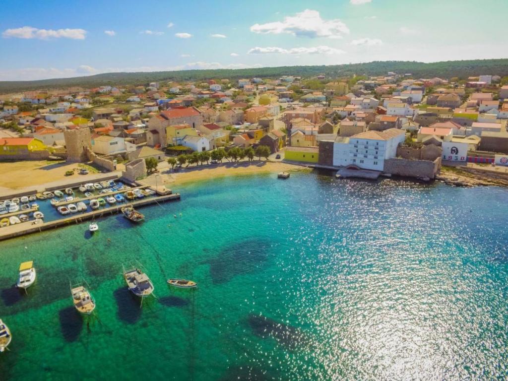 A kétszintes „Villa Matino” családi ház Ražanac központjától 400 méterre, csendes és napos helyen található, 440 méterre a tengertől és a strandtól. Egy 500 m²-es, bekerített telken a vendégek használhatják a saját úszómedencét (8 x 4 m, mélysége 145 cm, szezonálisan 5.15.–10.15. között), a kültéri zuhanyzót és a grillezőt. A medencét a tulajdonos tartja karban. A házban ingyenes internet, mosógép, 4 légkondicionáló és 3 autó számára parkolóhely áll rendelkezésre. A tulajdonos nem fogad fiatalabb csoportokat. A ház 250 m²-es, és 2 apartmanból áll, amelyeket együtt bérelnek - ideális azoknak a csoportoknak, akik a magánéletre és a közös térre vágynak. A kisebb apartmanban 2 hálószoba (180x200 cm), konyha, étkező, nappali, fürdőszoba és 3 terasz (2 tengerre néző) található. A nagyobb lakásban 3 hálószoba (2x 180x200 cm, 1x 140x200 cm), konyha, étkező, nappali, 2 fürdőszoba, 2 terasz és egy tárolóhelyiség található.
