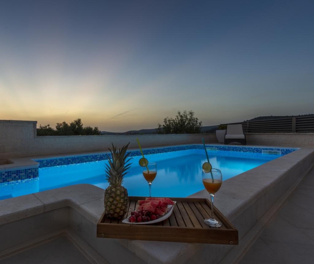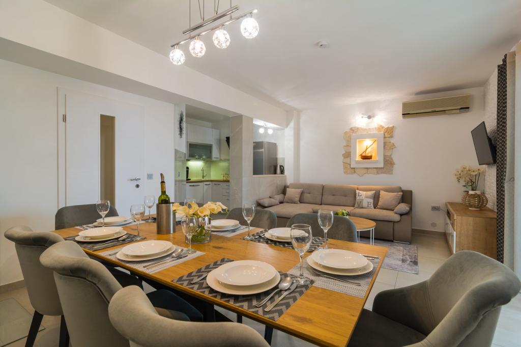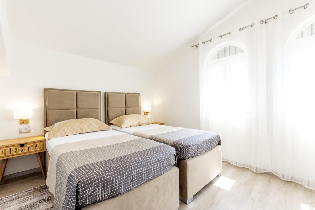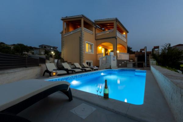 Az újonnan épült üdülőhely csendes helyen, távol a zajtól és a tömegektől, így a vakáció oázisa az Ön nyaralásához nyílt kilátással a kristálytiszta tengerre. A ház 4 hálószobából, 2 fürdőszobából, konyhából és nappaliból, 2 teraszból és egy erkélyből áll, amely a reggeli távozásra és a mágikus esti naplementére néz. Az udvaron egy fűtött medence található masszázsszavállalóval és nyugágyakkal, egy kültéri zuhanyzóval és egy nagy grillsütővel, amely csak a vendégek szolgálatában áll, és saját parkolóval rendelkezik.