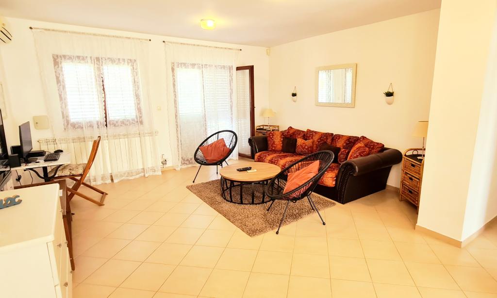 Nagy villa. Modern, luxus légkondicionálóval, TV-vel, wi-fi-vel. A villa épülete új, kb. 150 méterre a tengertől és a homokos strandtól. Nagyon kellemes és békés környezetben fekszik. A tenger partja homokos, könnyen megközelíthető a tengerbe, több mólóval. A tulajdonosok kedves és segítőkész.