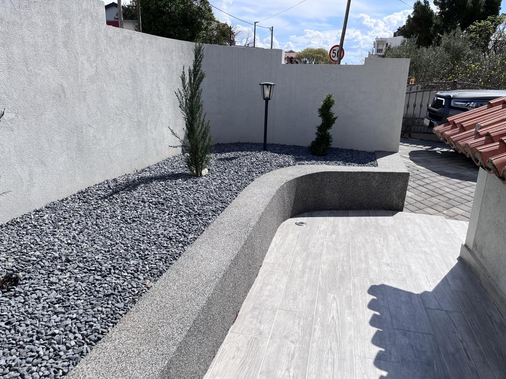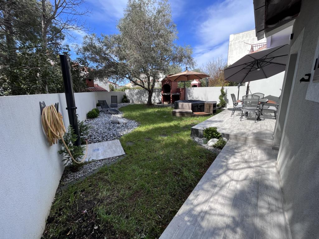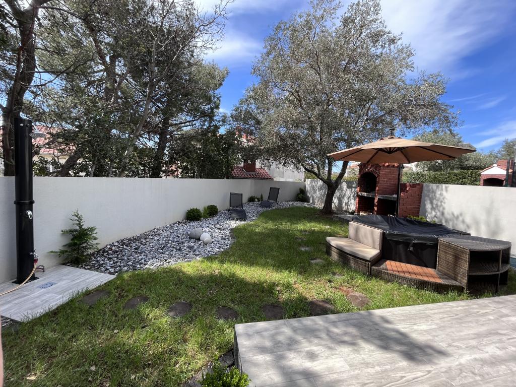 Kedves villánk Starigrad Paklenica központjában, a DC8-as főúton található, mégis biztosítja azt a békét és magánéletet, amelyre szüksége van egy kiváló nyaraláshoz. A helyszín gyors hozzáférést biztosít a tengerhez, a Paklenica Nemzeti Parkhoz, ha különböző helyszíneket szeretne felfedezni, közel az A1-es autópályához és a zadari repülőtérhez. A házzal szemben minden nap nyitva tartó bolt található, éttermek pár perc sétával elérhetők, minden egyéb, amire szükség lehet, 2 kilométeren belül található (ATM, posta, gyógyszertár, benzinkút, gyógyszertár...) A belső terek A villa modern kialakítású, ahol üdvözlőajándék, valamint minden nyaralóhoz szükséges kellék és eszköz várja Önt. Lazíthat a nappaliban különféle tévéműsorok mellett, korlátlanul internetezhet, vagy egyszerűen csak napozásra használhatja valamelyik teraszt kávézás közben. Ha szeretné elkészíteni saját ételeit, akkor teljesen felszerelt konyhája van gépekkel és edényekkel. Ha kifelejtett valamit a kozmetikumok közül vagy a szükségleti cikkekből, ne aggódjon, nálunk mindent megtalál, amire szüksége van. Az udvaron lévő kültéri teraszon hidromasszázs kád fogad, melyet saját kívánsága szerint temperál