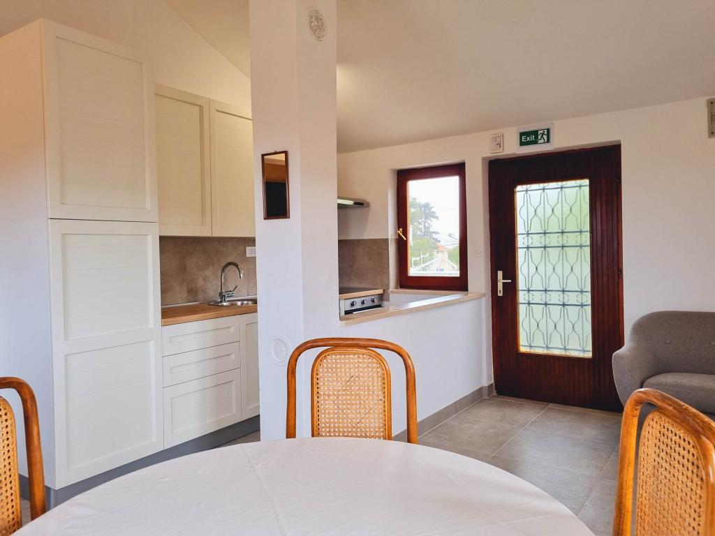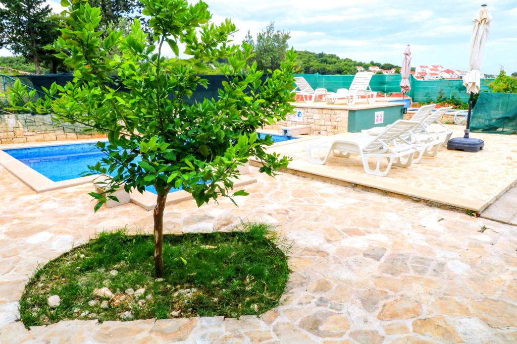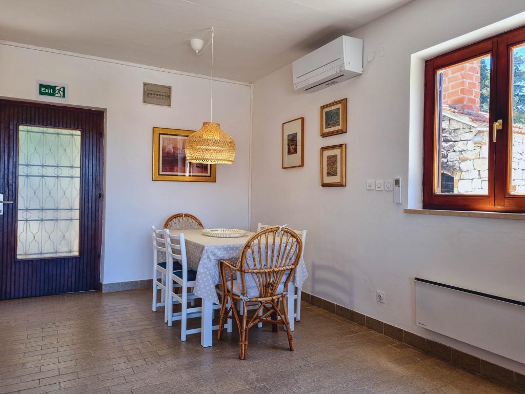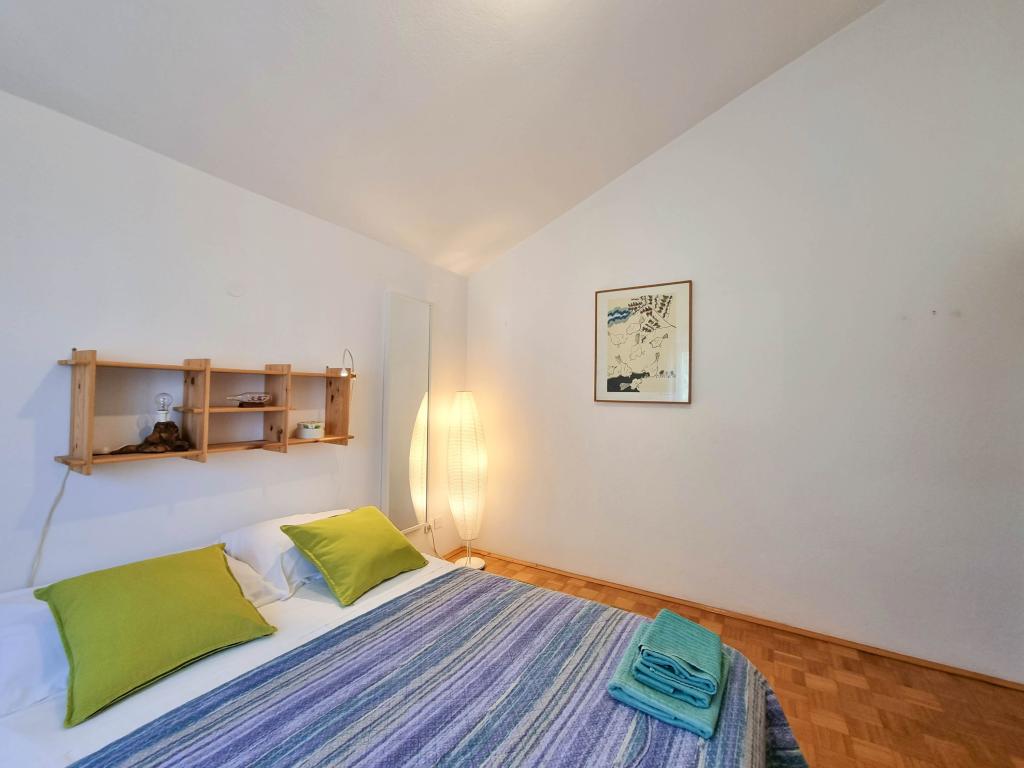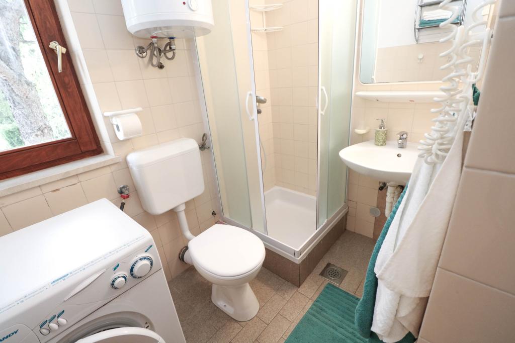 A Villa Dvornik teljes magánéletet biztosít kényelmes szálláson gyermekes családok, diákcsoportok és több generációs családi összejövetelek számára. A tengerre néző apartman mindössze 300 méterre található a tengertől és a strandtól. Lakóterület 110 m2 + 25 m2 terasz, nagy, 280 m2-es kőlappal burkolt kert, 4 szobával (8 ágyas) és két medencével. Egy nagy medence 4 db 24 m2-es, 1,5 m mélységű, felnőttek számára kialakított masszázsfúvókával, valamint egy kisebb, 3,5 m2-es, 0,5 m-es, kisgyermekeknek szánt medence. Mindkét medence 10 m2-es napkollektorokkal fűtött a medence hőmérséklete májusban és októberben 21 °C. A kültéri zuhanyzó és grill a ház körül található. A ház légkondicionált és vezeték nélküli internet-hozzáféréssel rendelkezik. A házat körülvevő telken belül három parkolóhely biztosított. Háziállatokat szívesen fogadunk.