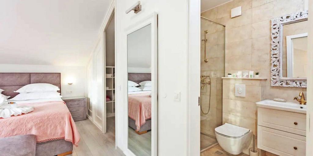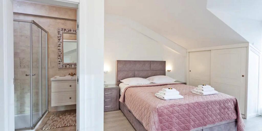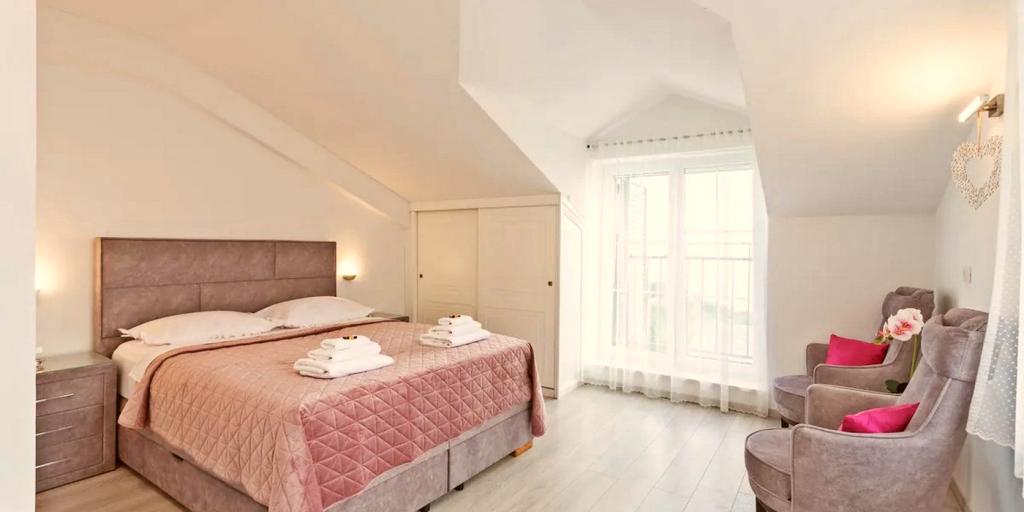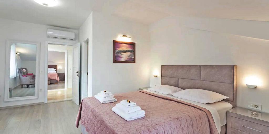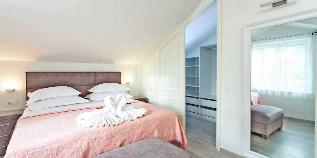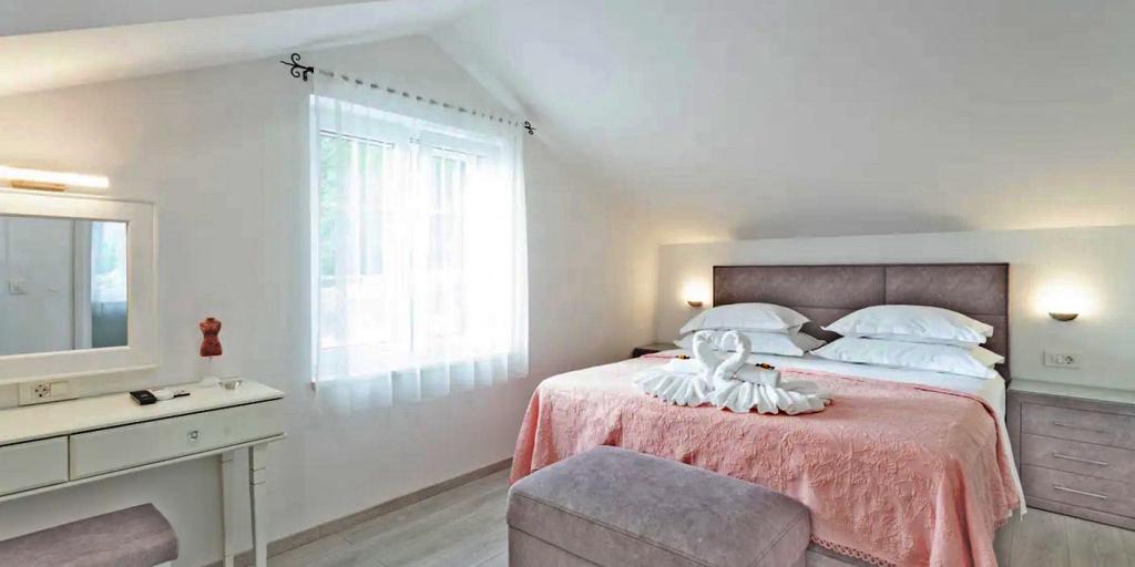 A ház két tágas szobából áll, mindegyik szobán belül saját fürdőszobával, melyekben 4 fő elszállásolására van lehetőség, és szükség esetén 1 főre pótágyazható. Minden szükséges elektronikával felszerelve (mosogatógép, mosógép, TV minden szobában, wifi), tágas konyha, nappali, valamint szabadtéri grillsütő, ahol a legszebb friss hal vagy hús finomságokat készítheti el szeretteinek. A házhoz tartozik egy medence és egy strand, ahol jól érezheti magát távol a városi nyüzsgéstől. Két emeleten található még két nagy terasz ülőbútorokkal, ahol a legmagasabb teraszról a szigetekre és a tengerre nyílik kilátás, mintha a tenyerében tartaná őket. A házhoz 2 fedett parkoló is tartozik. A ház mellett található a Biokovo Natúrpark ösvény, a sok ösvény egyike a gyönyörű r