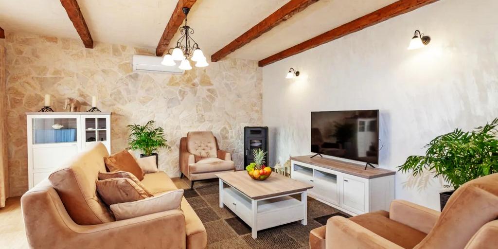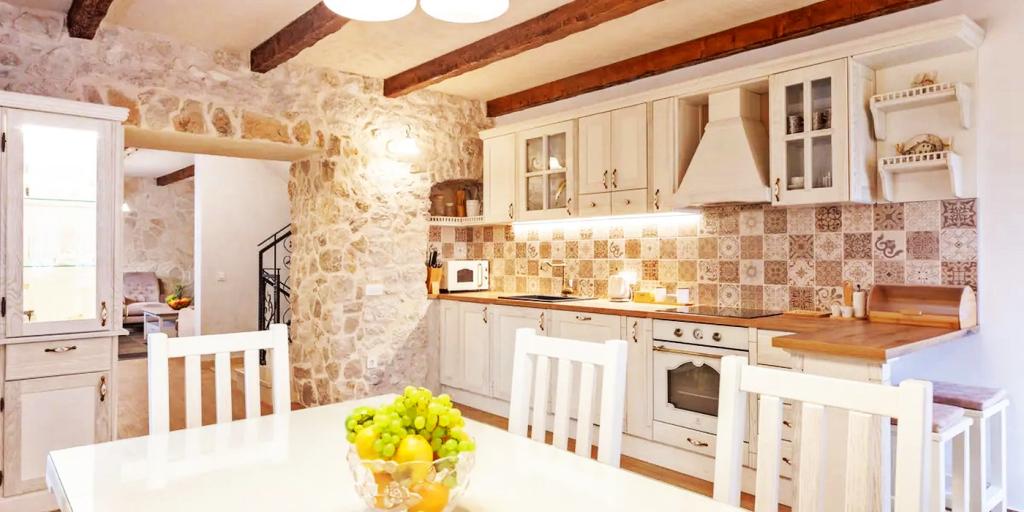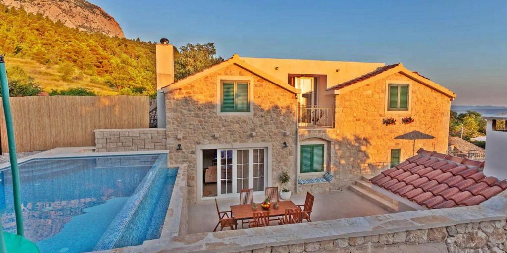 Egy látványos, kézzel épített villa a természet szívében, ahol a lélek és a test újra összekapcsolódik. A ház egy bennszülött faluban található, a falu tetején, csodálatos kilátással és békével. A ház egy része még eredeti, a többit kézzel építették a faluból származó kőből. Nagyon sok szeretet szőtt bele, így a benne tartózkodásod a kínált luxus mellett a régi idők egy picit is elhozza. A ház 5 km-re található Makarska városától.