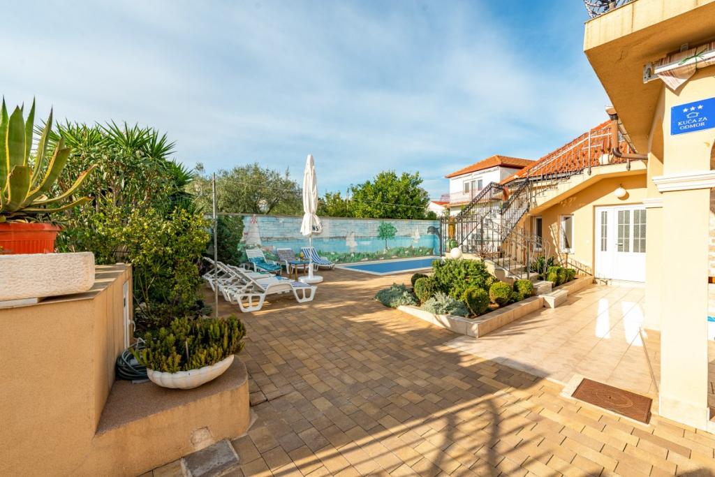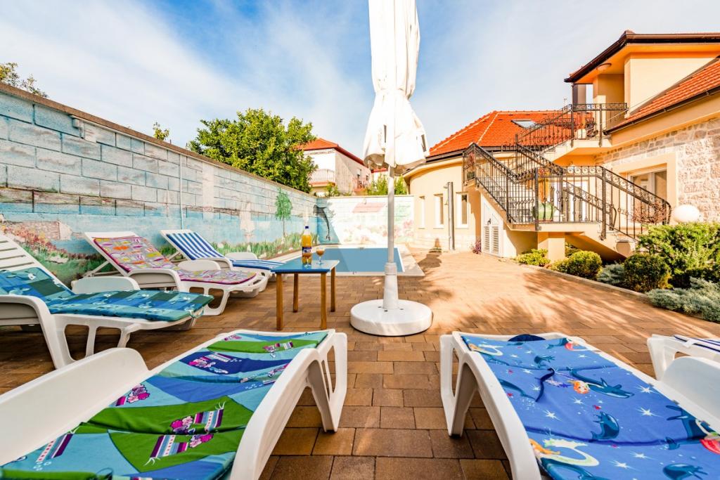 Ezt a lenyűgöző kővillát tengervízzel teli saját szabadtéri medencével 2018-ban teljesen felújították. A villa 100 m-re található a legközelebbi strandtól. Eredetileg 130 évvel ezelőtt épült, ezért megvan a maga egyedisége, melegsége és lelke, amiről Ön is meggyőződhet. Ingyenes Wi-Fi-vel, 3 autó számára ingyenes parkolási lehetőséggel, valamint légkondicionált szállással várja vendégeit. A 210 négyzetméteres villa 4 hálószobával, 3 fürdőszobával, ágyneművel, törölközőkkel, síkképernyős kábel TV-vel, teljesen felszerelt konyhával, valamint tágas, 45 négyzetméteres étkezővel és nappalival rendelkezik, amely kiválóan alkalmas a társasági életre. , fedett terasza is van kerti bútorokkal és nagy amerikai gázgrillel a kellemes nyaraláshoz és élményhez. Az egész udvart gyönyörű kovácsoltvas kerítés és mediterrán növényzet veszi körül. A strandtól mindössze 200 méterre, a szupermarkettől, étteremtől, piactól, orvostól és postától pedig mindössze 100 méterre található. Nem kell autó, mindent megtehetsz gyalog.