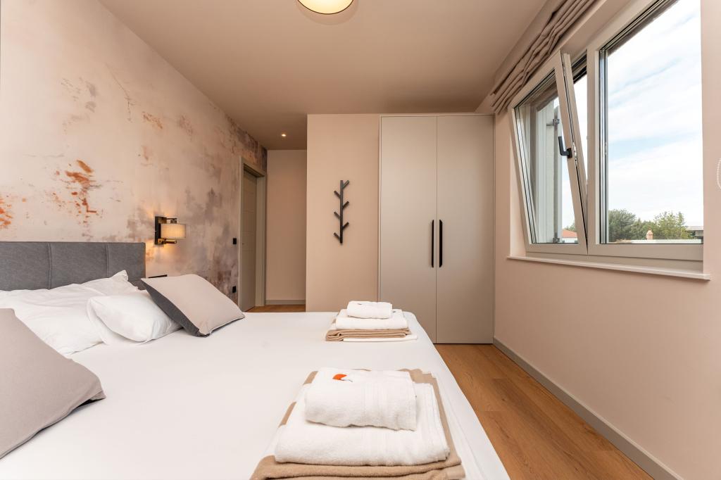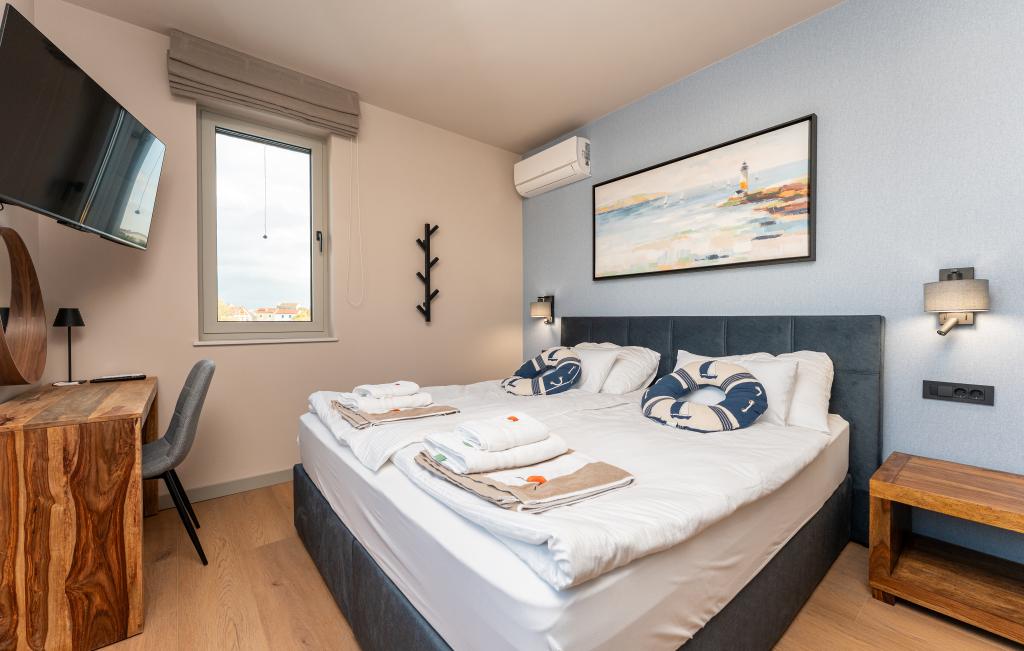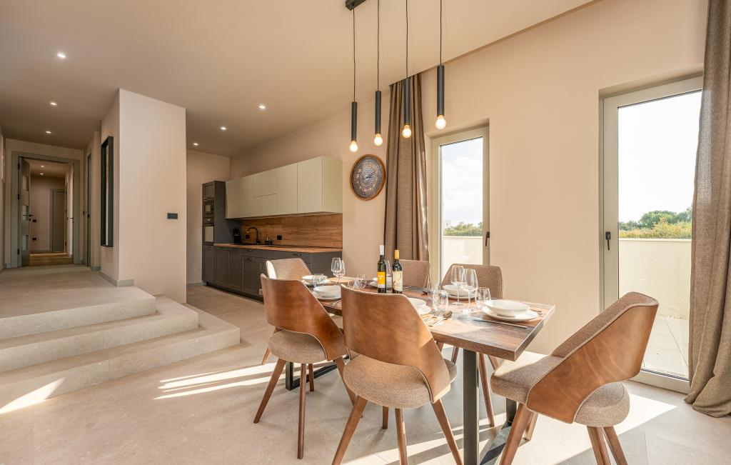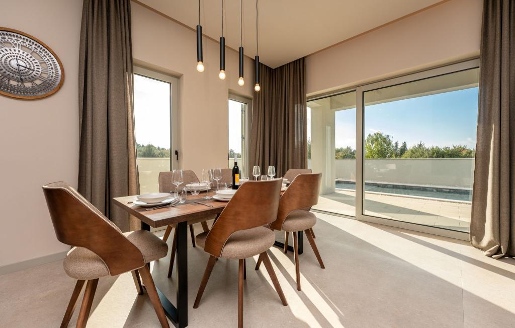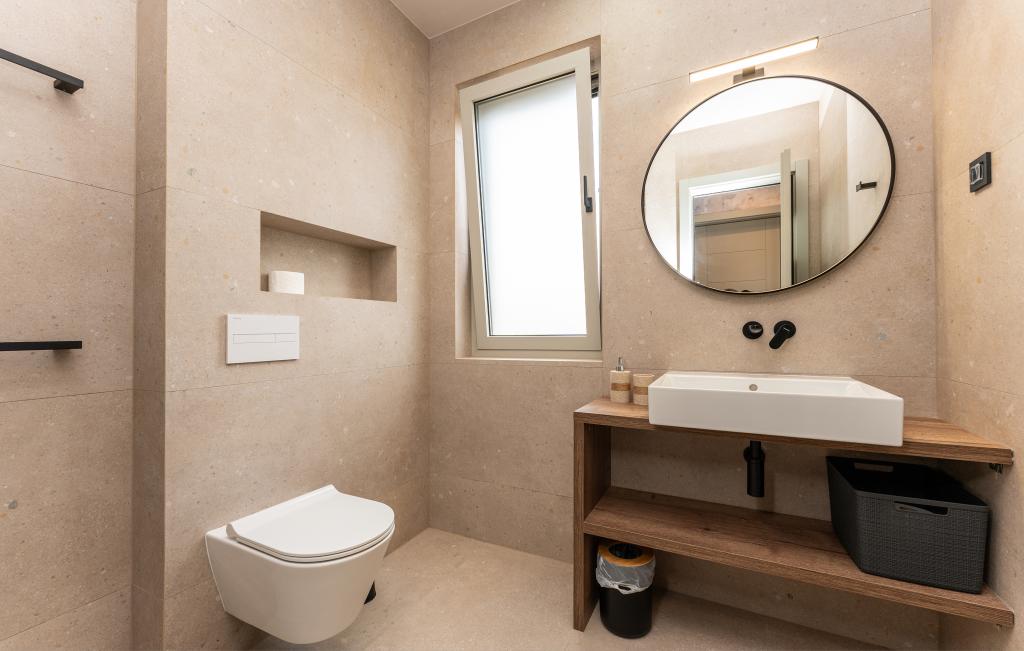 A körülbelül 270 m²-es ház Zatonban található, Zadartól 12 km-re északnyugatra. Az épület új, 2025 júniusában készült el. A bekerített udvarban 4 parkolóhely, 2 elektromos autó töltőállomás, egy 30 m²-es fűtött medence és egy nagy terasz található, ahol délutánig élvezheti az árnyékot. A házban két azonos elrendezésű apartman található, mindegyikben nappali, teljesen felszerelt konyha, 3 hálószoba, 2 fürdőszoba és egy további WC található. Minden szoba légkondicionált, és mindegyik okos TV-vel felszerelt. A ház 12 fő befogadására alkalmas. A ház minden emeletén a gyerekszobában található egy 5. számú fürdőszoba. A ház tetején tengerre néző terasz, egy további konyhasarok, kerti bútorok és masszázskád található a nappali és esti kikapcsolódáshoz. Családdal és/vagy barátokkal együtt, de szükség esetén külön-külön is (mindegyik a saját apartmanjában) élvezheti a létesítményt. Napközben biztosan élvezni fogja a medencét és az alsó terasz nyújtotta árnyékot, este pedig a tetőteraszon pihenhet.