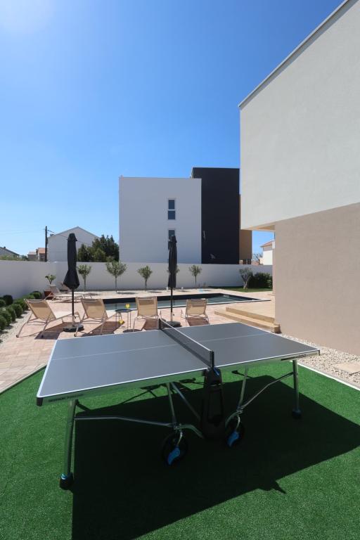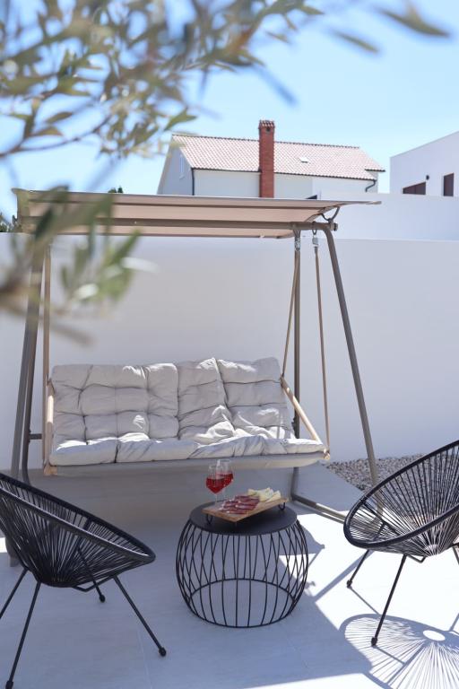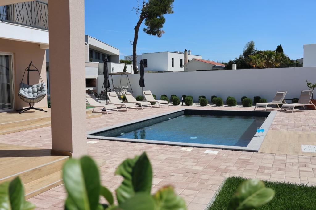 Üdvözöljük a Villa Amarában, egy modern berendezésű nyaralóban, amely a festői Zaton városában található, nem messze Zadartól. Ez az elegáns villa saját medencével ideális egy békés és pihentető nyaraláshoz családdal vagy barátokkal, távol a város nyüzsgésétől, mégis közel minden szükséges szolgáltatáshoz. A villa két szinten terül el, és tágas nappalival, teljesen felszerelt konyhával, kényelmes, erkélykapcsolattal rendelkező hálószobákkal és modern fürdőszobákkal rendelkezik. Nagy üvegfalak kötik össze a belső teret a kültéri terasszal és a medencével, így tökéletes helyet biztosítanak a napsütés élvezetéhez. Az udvaron privát medence, napozóágyak, grillező, valamint fedett terasz található kültéri étkezőasztallal. Ingyenes Wi-Fi, légkondicionáló minden szobában, Smart TV és saját parkoló áll rendelkezésre. A strandok és a kristálytiszta tenger mindössze néhány perc autóútra található, akárcsak a híres úti célok, mint Nin, Zadar és a nemzeti parkok. Tapasztalja meg Dalmácia nyugalmát, kényelmét és eleganciáját - foglalja le a Villa Amarát még ma!